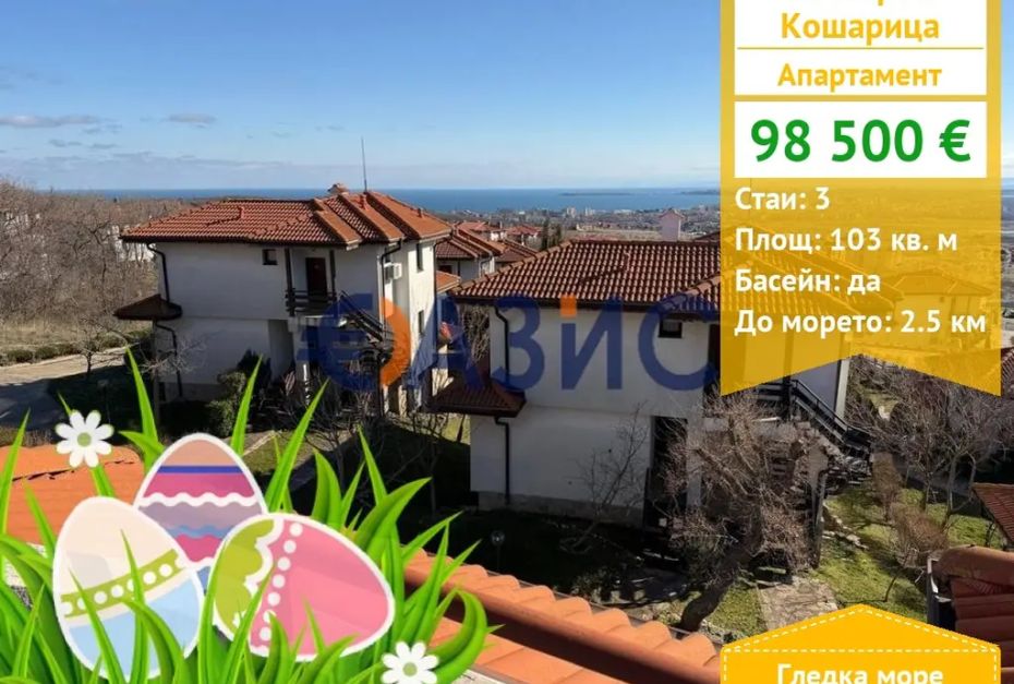 Предлагаме за продажба апартамент - мезонет в Комплекс Бей Вю Виллас . Апартаментът е на две нива(2 и 3-ти етаж) и се състои от входно антре, просторен хол с кухня,трапезна маса и кът за сядане, две спални, две бани и тераса с хубава панорамна гледка - море. Продава се с мебели и уреди. Подходящ за лятна ваканция,целогодишно живеене и инвестиция.