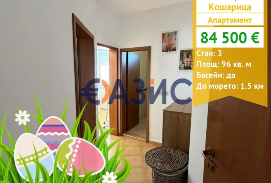 Предлагаме за продажба апартамент с 2 спални в живописния Комплекс 'Несебър Вю', който се намира в Кошарица. Апартаментът се състои от входно антре,просторна и светла всекидневна с кухня,трапезна маса и кът за сядане,две спални,баня с тоалетна и голяма тераса с изглед към басейна. Имотът е обзаведен с нови мебели и е в много добро състояние.Идеално място за семейна почивка или отдаване под наем и инвестиция.