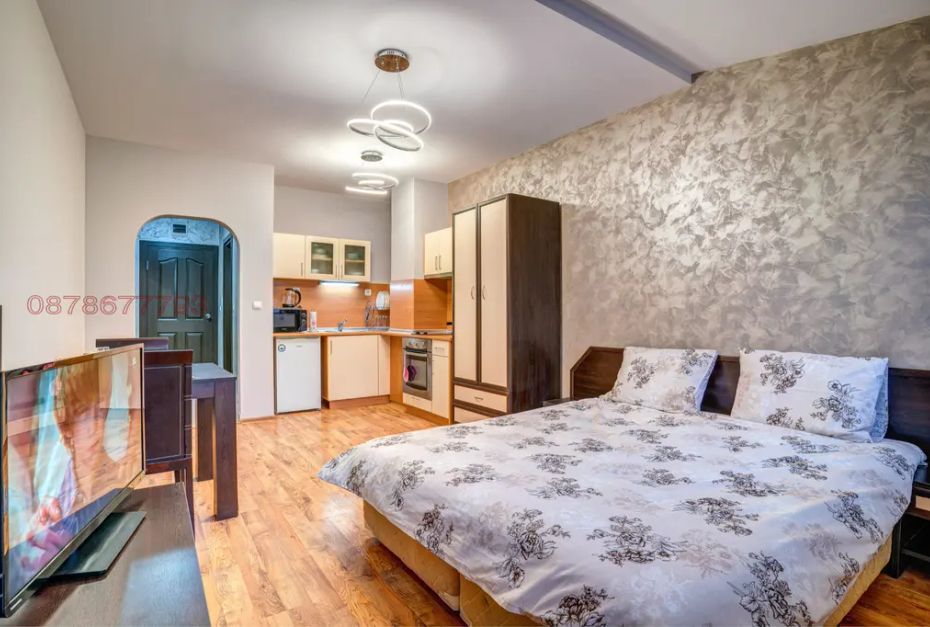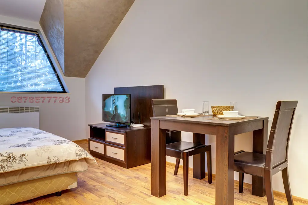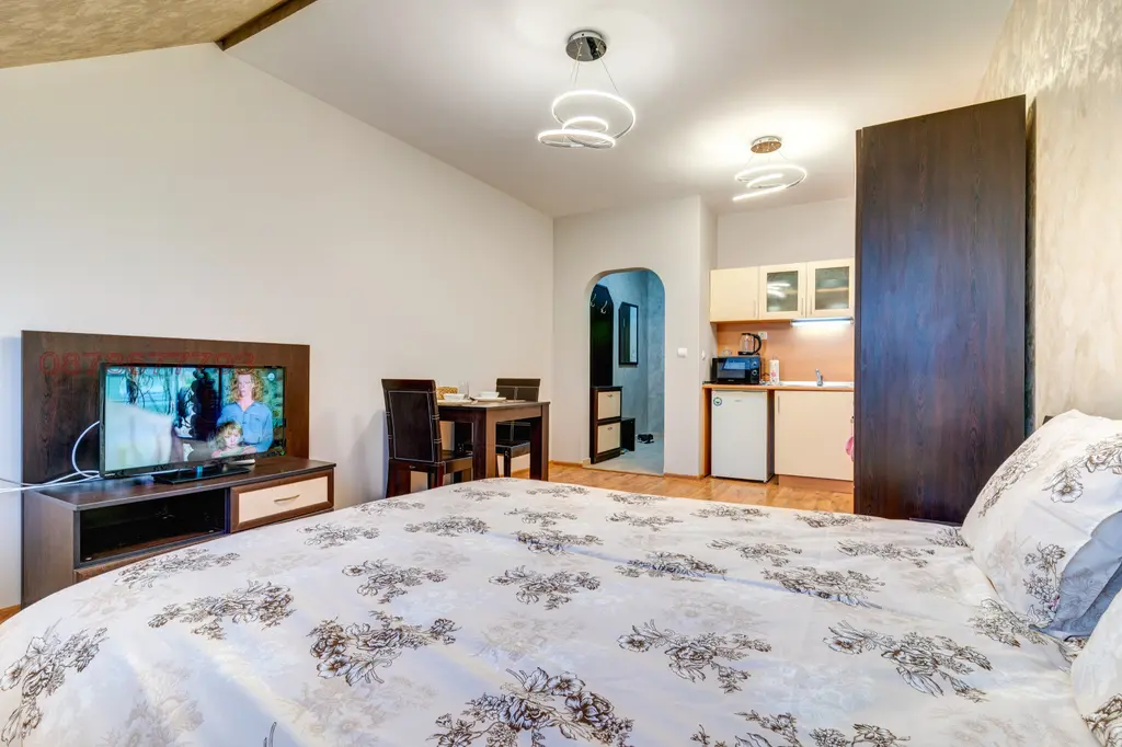 Студиото може да побере удобно между 1-3 гости (2ма възрастни и 1 дете). Студиото е обзаведено със спалня, сгъваемо единично легло, гардероб, маса с два стола. На разположение на нашите гости има напълно оборудвана кухня, хладилник, фурна, тостер, кафе машина, електрическа кана. В студиото има кабелна телевизия и Wi-Fi. Отопление- електрически конвектори. Осигурени са хавлии и спално бельо.
