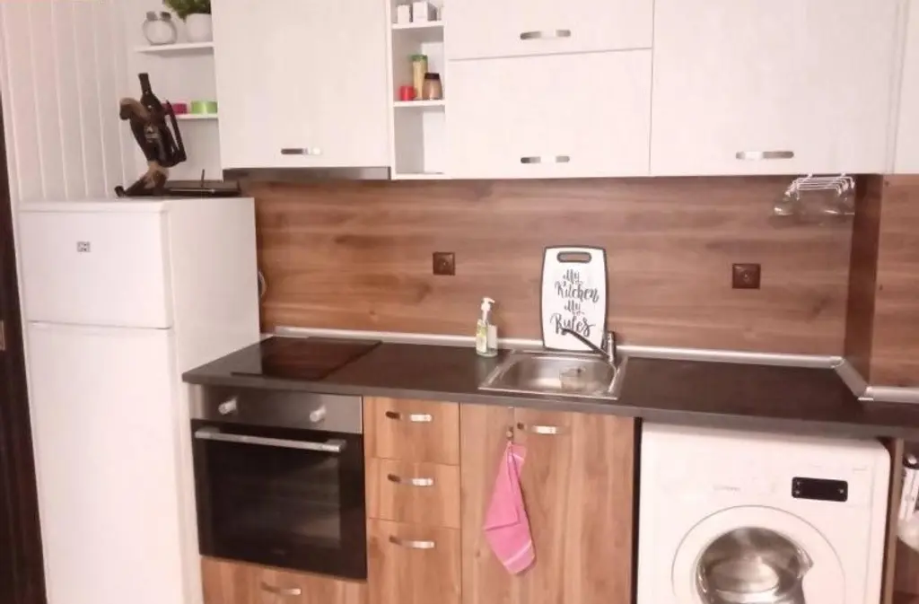 Едностаен обзаведен апартамент. Жилището се намира в близост до НБУ, магазини, метро и спирки на градски транспорт.