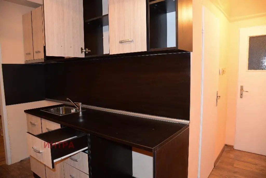 Интра предлага 1-стаен преустоен в 2-стаен апартамент. Необзаведен. Кухнята е изнесена в коридора.