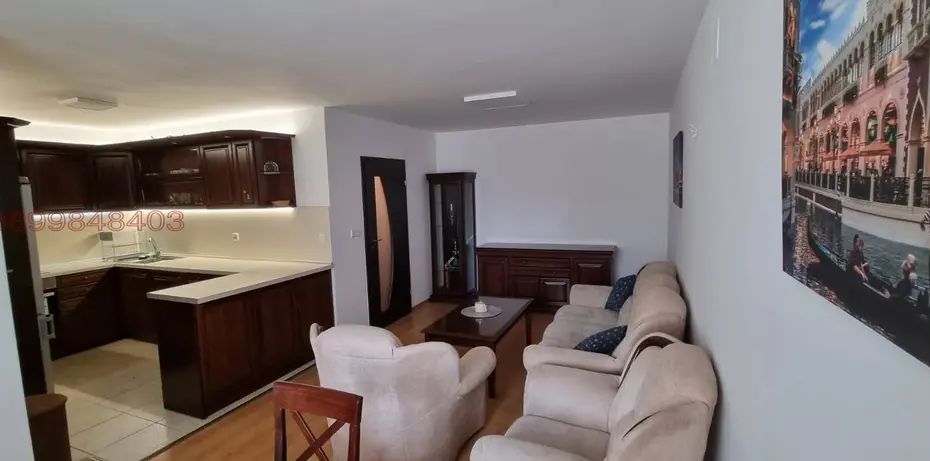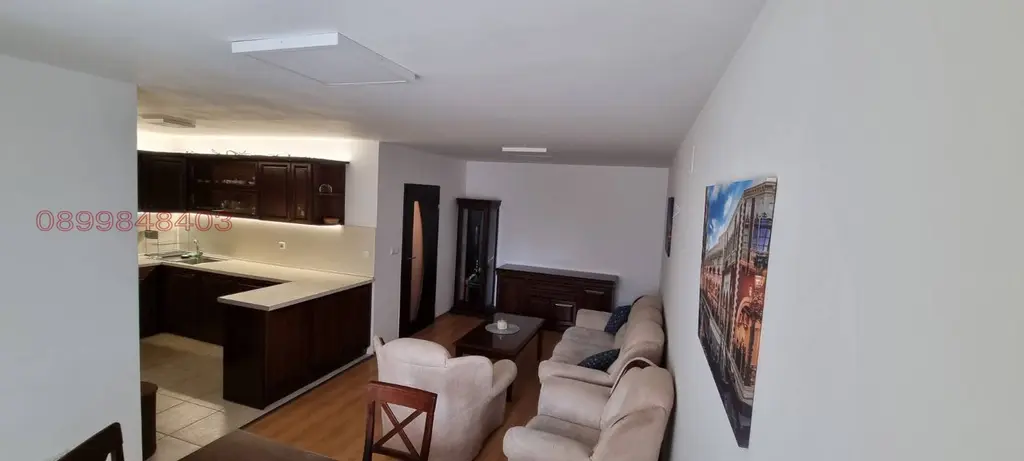 Апартаментът е разположен на 2-ри етаж от 8-етажна сграда с много добре поддържани общи части и асансьор. Състои се от коридор/входно антре, дневна с кухненски бокс, голяма спалня и баня с тоалетна. Кухнята разполага с миялна , пералня ,хладилник ,печка и комбинирани котлони . Отоплява се на електричество - конвектори , разполага и с климатик. Има възможност за наемане на паркомясто !