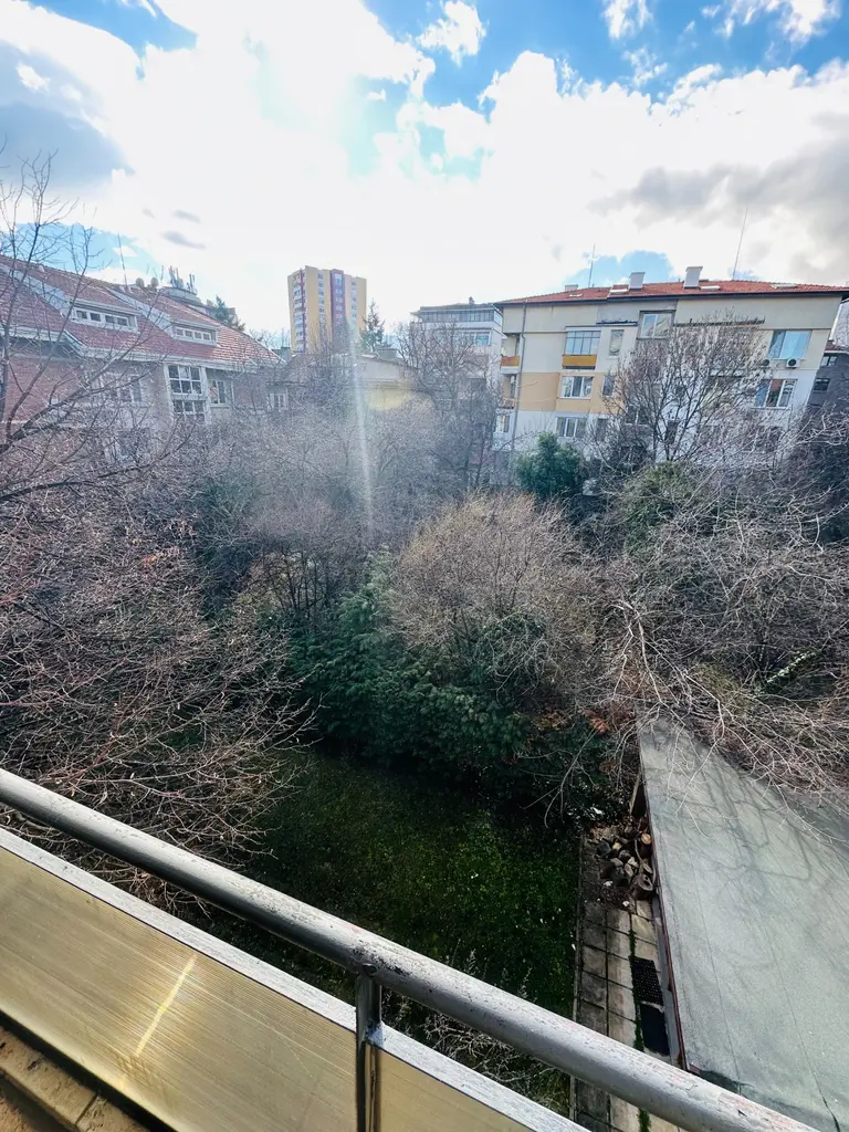 Двустайният апартамент с площ от 100 кв.м се намира на трети етаж в поддържана сграда с по един апартамент на етаж в квартал Изток. Жилището разполага със самостоятелна спалня и просторна всекидневна с кухненски бокс, като и двете помещения имат излаз към балкони, осигуряващи естествена светлина и гледка към вътрешен двор. Антрето е широко и оборудвано с гардероб, а банята е с тоалетна. Локацията съчетава тишина и удобна комуникация, което прави имота подходящ за предпочитащи спокойствие в градска среда. Апартаментът се отдава обзаведен и е готов за настаняване.