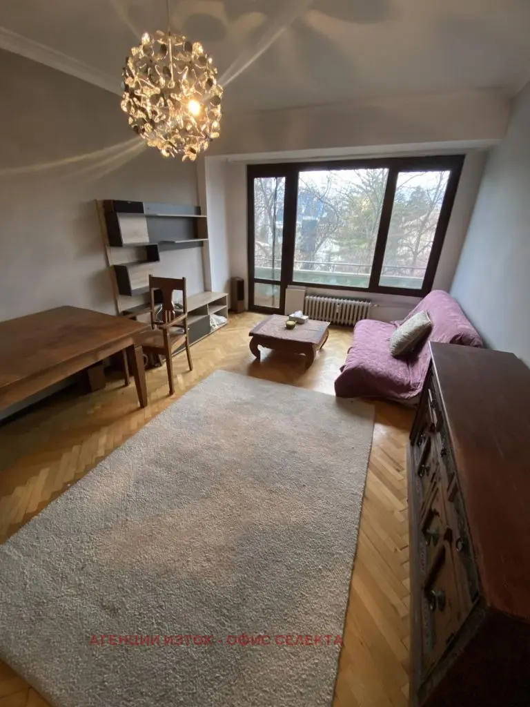 Този двустаен апартамент се намира в квартал Изток, град София, на петия етаж от шестетажна сграда с асансьор. Имотът е подходящ за наем, предлагащ комфорт и удобство в градска среда.