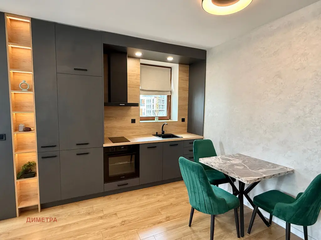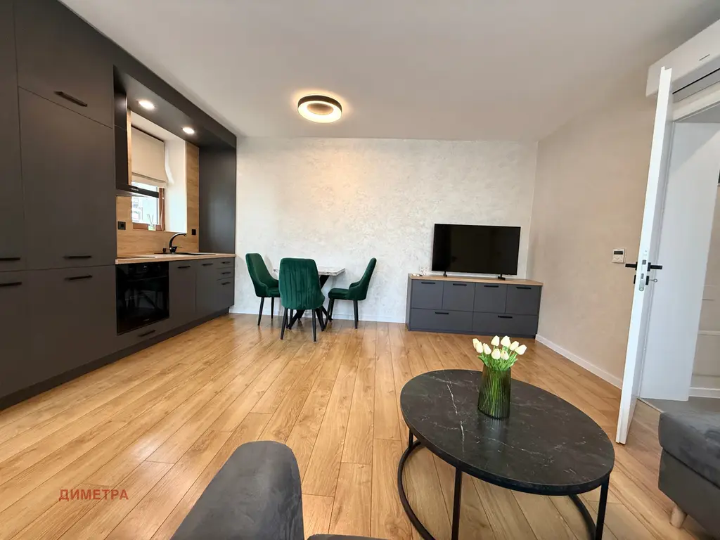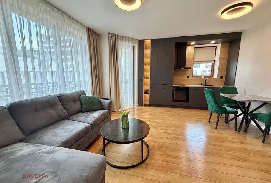 Жилището се състои от дневна с кухненски кът и тераса, просторна спалня и мокро помещение! Обзавеждането включва всичко необходимо за домакинството: голям хладилник с камера, фурна, котлони, миялна машина, пералня и сушилня. Има газова инсталация и климатик. Месечната такса за поддръжка на комплекса е ВКЛЮЧЕНА в цената!
