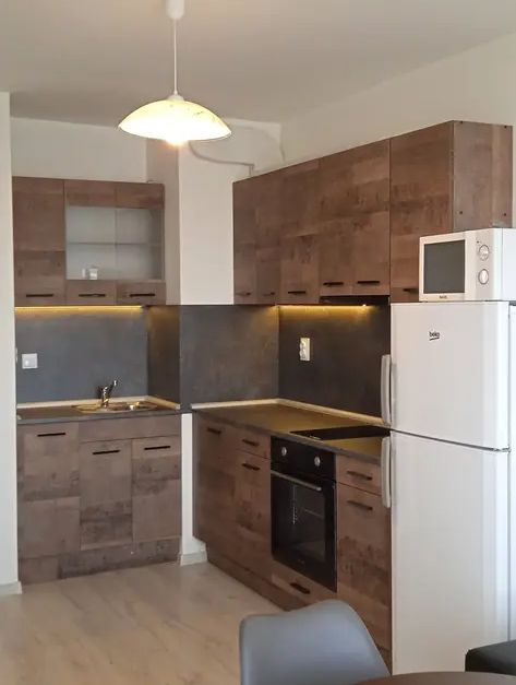Нов двустаен апартамент под наем в ж.к. Левски-Г за сам/а или двойка..Към него се предлага и паркомясто,включено в цената, директно пред входа.Предпочитани наематели: българи, непушачи, без домашни любимци, без чужденци!Имота е обзаведен с всичко необходимо. Разпределение: дневна с кухненски бокс, баня с тоалетна, спалня,сервизно помещение и тераса. Отоплението е на ток, разполага с климатик. Изложение ЗАПАД.Местоположението му е в близост до бъдещата метростанция,автобусна спирка, училище, детска градина.Квартала е предпочитан от млади двойки и семейства.При наемане се подписва стандартен договор за наем и се дължи депозит в размер на един наем.За ваше удобство и оглед на това жилище, агенцията разполага с КЛЮЧ.