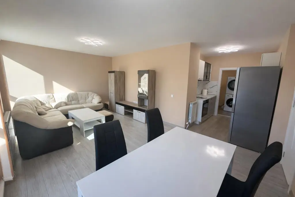 Месечният наем е 640 EUR. Това предложение съчетава функционалност и комфорт, идеално за млади професионалисти или семейство.