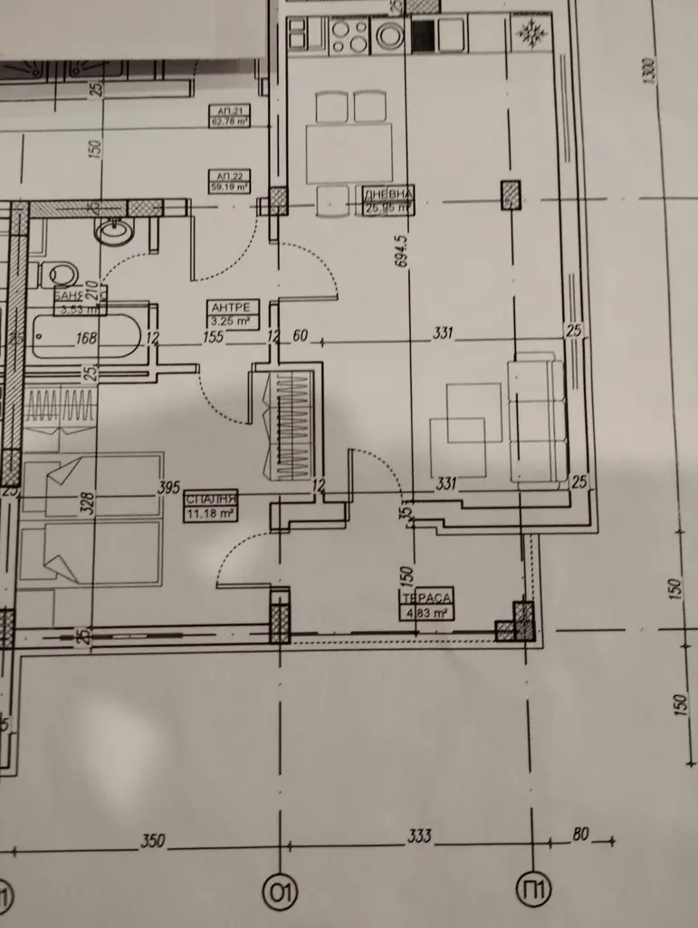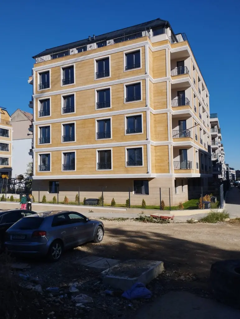 ВЕЧЕ с РАЗРЕШЕНИЕ ЗА ПОЛЗВАНЕ. Компактен двустаен апартамент с чиста площ от 59кв.м. и площ с идеални части от общите части на сградата 69кв.м. Изложение юг и изток. Разпределение(на скицата): дневна с кухненски бокс, спалня, санитарен възел и балкон. В цената е включено мазе в сутерен с площ от 1,7кв.м. Жилището се намира в нова сграда с предстоящ до месеци Акт16.Сградата е изградена по всички изисквания на действащото в момента законодателство. Отлична локация - до хипермаркет Кауфланд, детска площадка и кучешки парк. Отлична транспортна обезпеченост - до бъдеща метростанция при кръстовището на бул. Симеоновско шосе и ул. Проф. д-р Ив. Странски , редовни автобусни линии. За контакт: Георгиева 0888835699