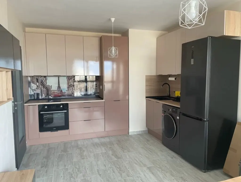 Имотът е обзаведен, с площ 55 кв.м, на 5-ти от 8 етажа в сграда с асансьор. Разпределението включва входно антре, дневна с кухня и трапезария, спалня, баня с тоалетна и тераса.