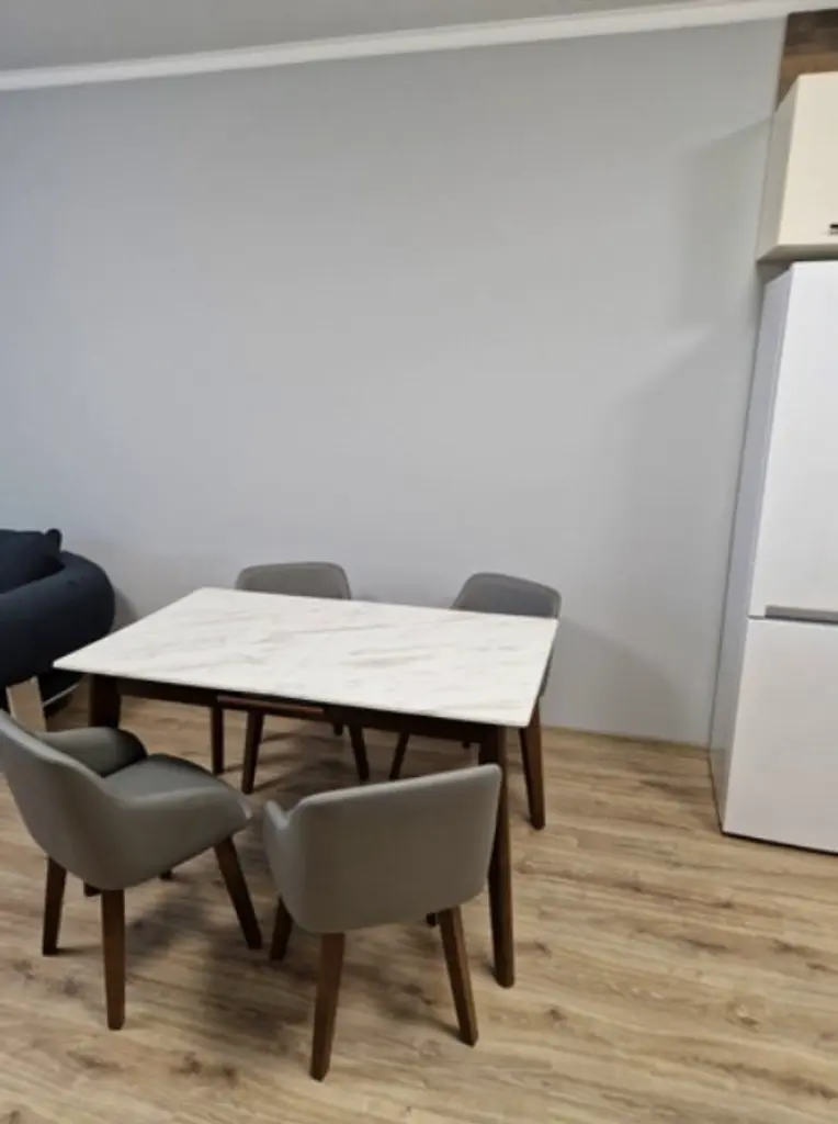 Имотът е обзаведен, с площ 73 кв.м, на 5-ти от 8 етажа в сграда с асансьор. Разпределението включва входно антре, хол с кухня и трапезария, спалня, баня с тоалетна и тераса.
