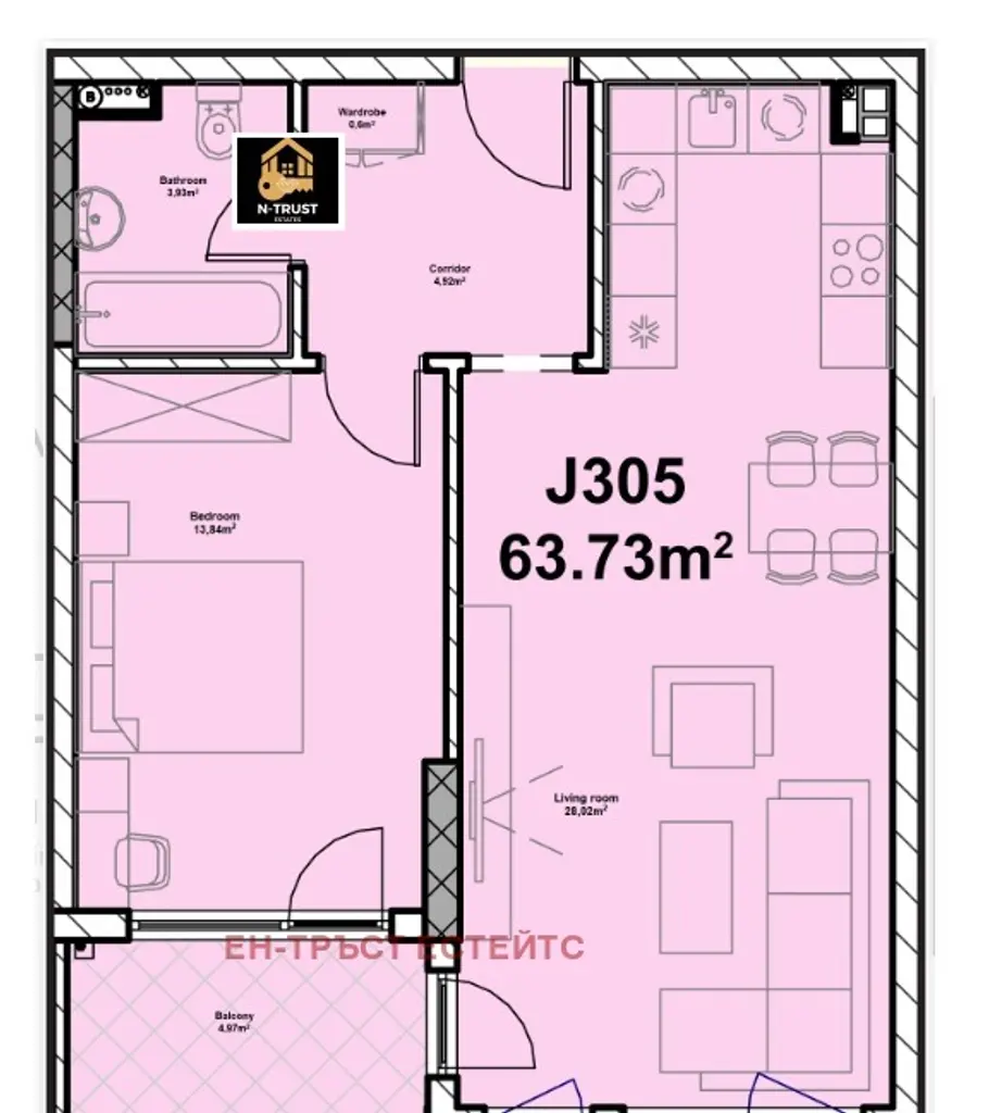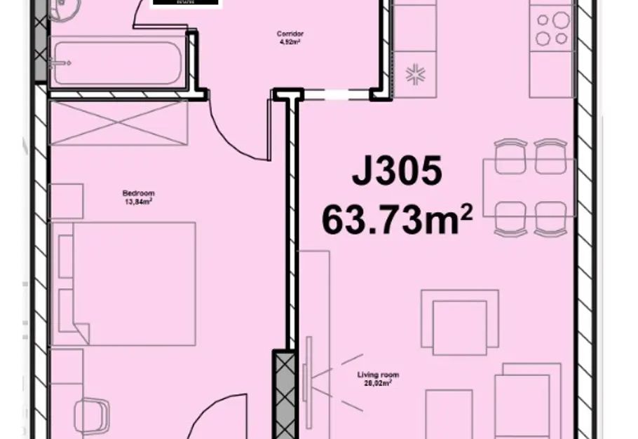 Апартамента с разположен на седми етаж и е със застроена площ от 63.73кв.м.