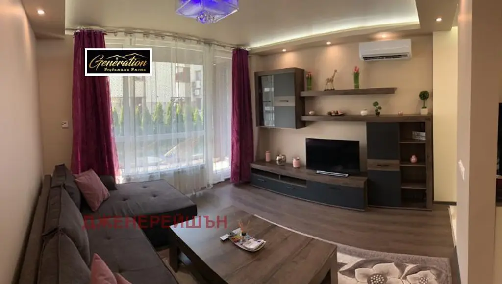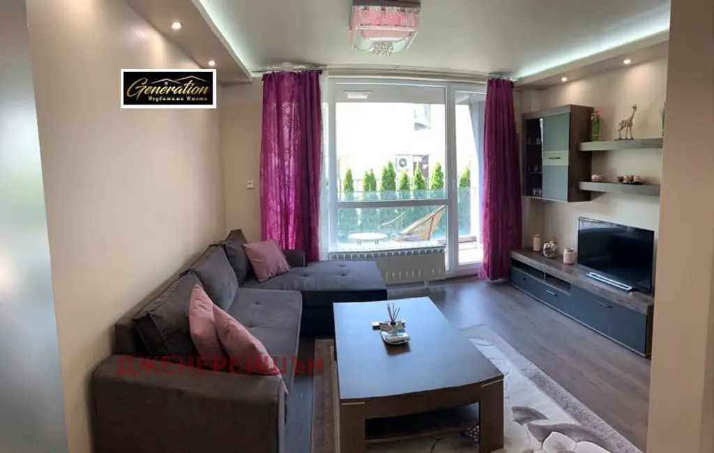 Дженерейшън Ви предлага почти чисто ново луксозно обзаведено уютно двустайно жилище в затворен комплекс на тихо място , на 10тина минути от центъра на София с кола. Комплексът е много спокоен,с отлично поддържани общи части. Жилището е изцяло луксозно обзаведено с всичко необходимо за едно домакинство. Апартамента е изключително топъл,с южно изложение. Отоплението е на газ. Състои се от хол с кухня,спалня,баня с тоалетна (душ кабина),малък коридор и тераса. Мазе към апартамента.Подходящо за сам човек или двойка . Без домашни любимци!
