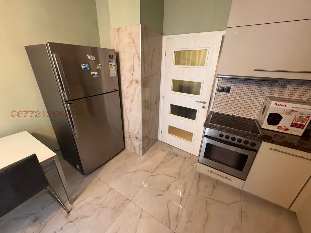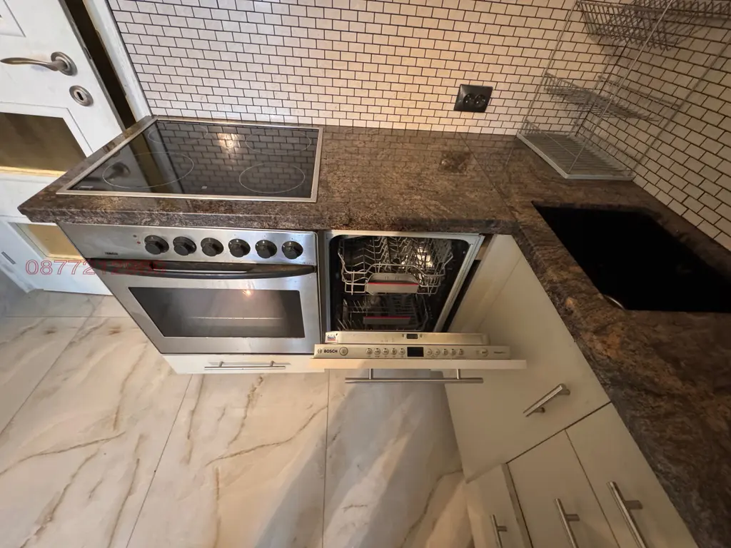 Разпределението е компактно и функционално, подходящо за едно домакинство. Апартаментът е оборудван с висок клас електроуреди като хладилник, печка и съдомиялна, което улеснява ежедневието.