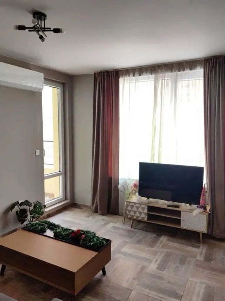 Агенция за недвижими имоти Титан Пропъртис - офис Младост предлага на Вашето внимание двустаен апартамент на отлична локация в жк. Кръстова вада. Намира се в непосредствена близост до МОЛ Парадайс, Южен парк, метростанция, а достъпът до всяка точка на града е максимално улеснен посредством Околовръстен път. Имотът е ситуиран на 4-ти жилищен етаж и разполага с площ 70кв.м, разгърната в следното разпределение: входно антре, хол с кухненски бокс и трапезария, спалня, баня с тоалетна, мокро помещение и тераса. За максималното удобство на своите нови стопани, жилището се предлага напълно обзаведено и оборудвано с всичко необходимо за едно домакинство. Отоплението е на ток, посредством климатици. Изложение ЮГ. Агенцията разполага с множество оферти в и извън района, в различни ценови диапазони и типажи на имотите. За оглед на това и други атрактивни предложения, не се колебайте да ни потърсите на посочения телефон или да ни изпратите данните си чрез формата за запитване на сайта. Реф.номер: 2195401.