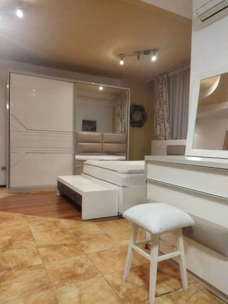 Разпределението включва кухня с дневен кът, голяма спалня с излаз на самостоятелна тераса, баня и отделна тоалетна. Апартаментът е обзаведен и предлага отопление на ТЕЦ, което осигурява комфорт през зимните месеци.