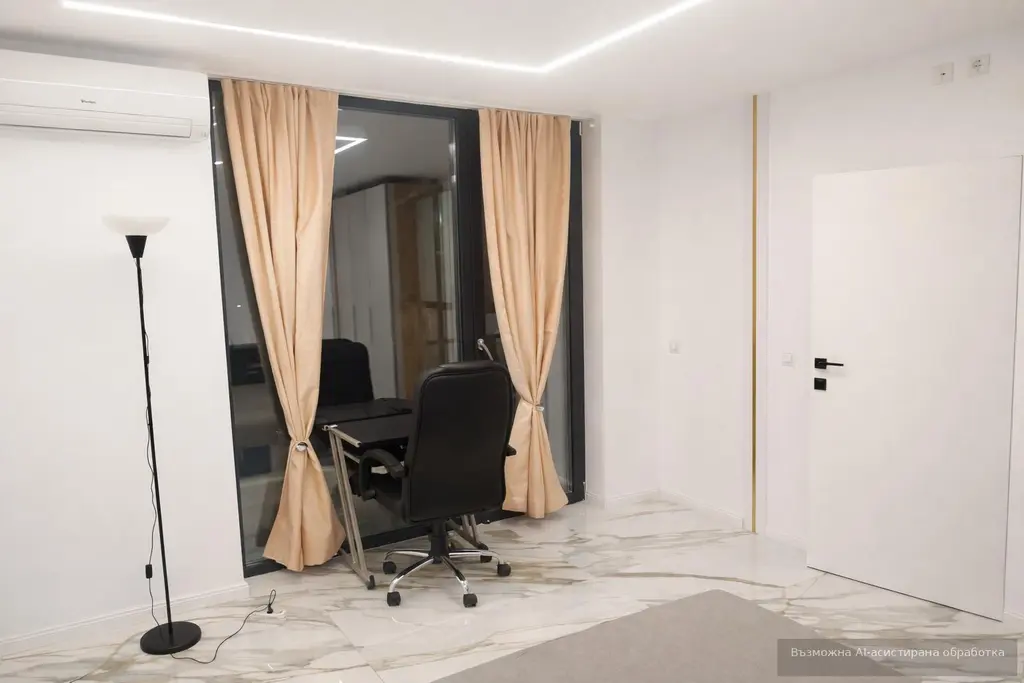 Жилището е на 4-ти етаж от 8 с наличен асансьор, с югозападно изложение и отопление на електричество.