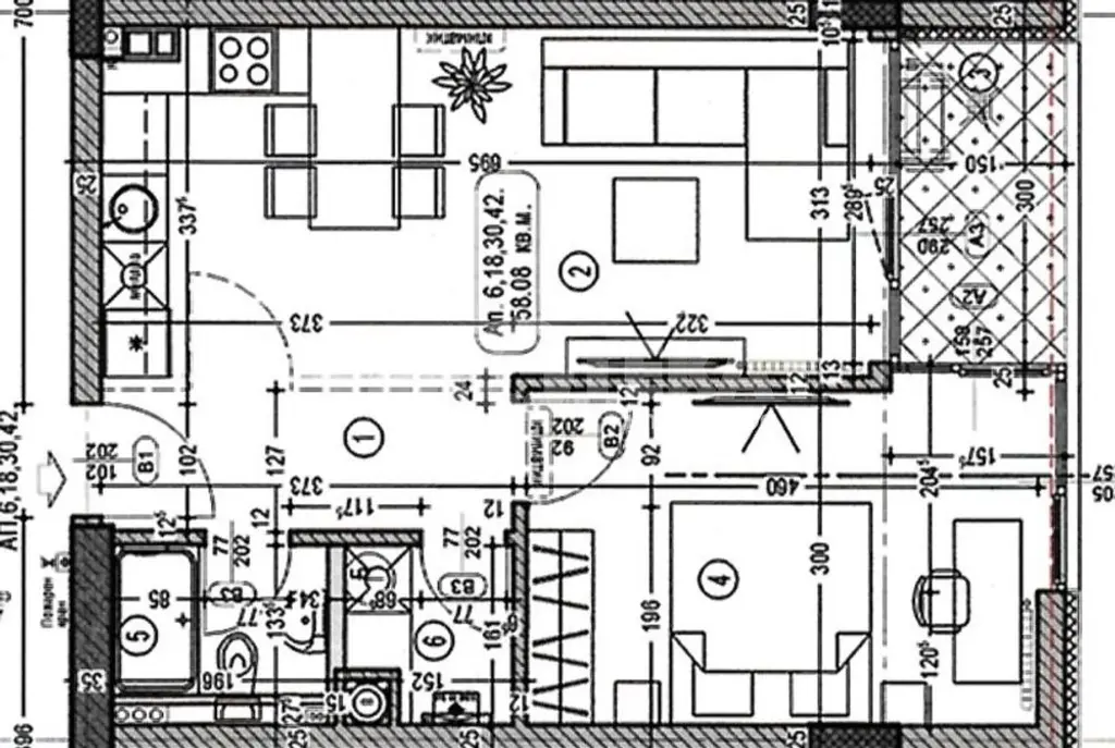 Застроена площ 58,08 кв.м / обща площ 73,87 кв.м.