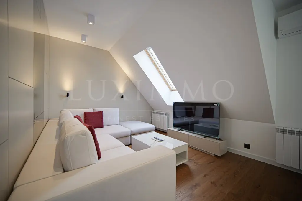Предлаганият имот е двустаен апартамент под наем, разположен в квартал Медицинска академия в София. Жилището е част от бутикова сграда с висок клас материали и красива фасада от естествен камък.