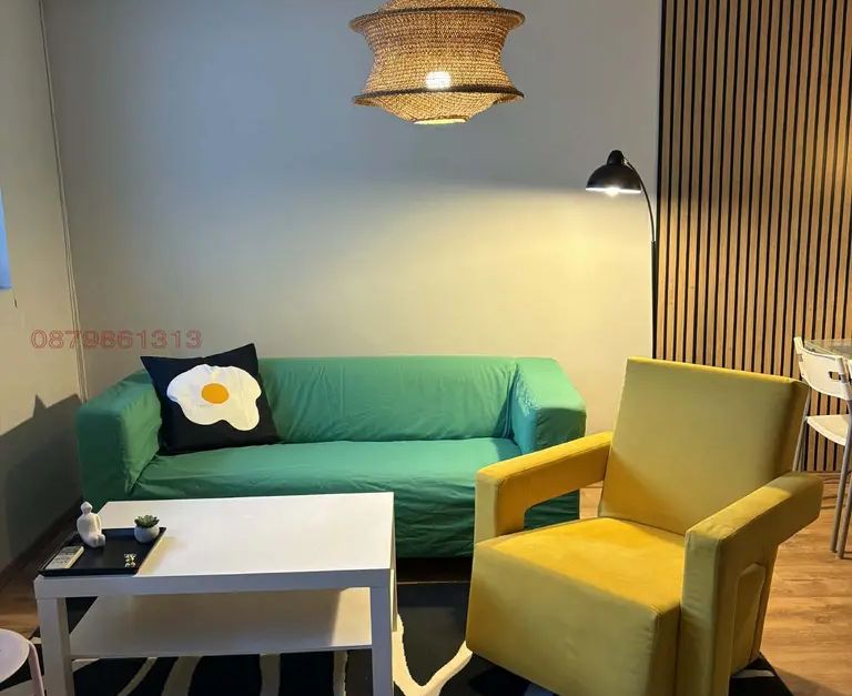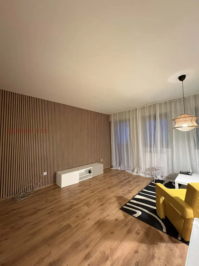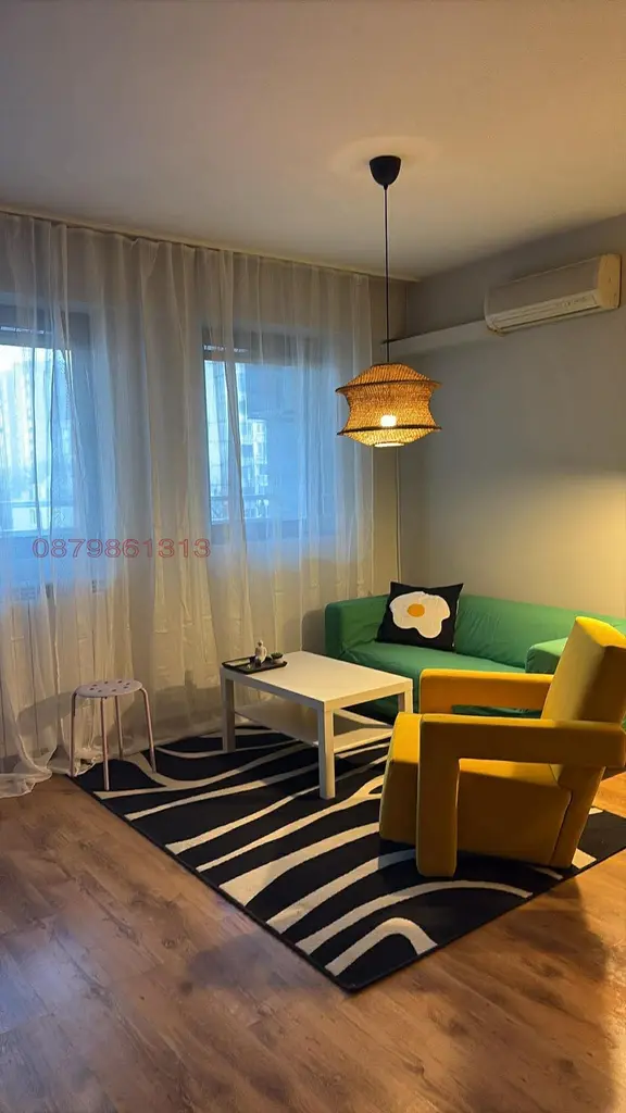 Състои се от голям хол с кухненски бокс, отделна спалня, голяма баня с тоалетна и голяма тераса. Изложение изток. Отопление парно и климатик, по желание.