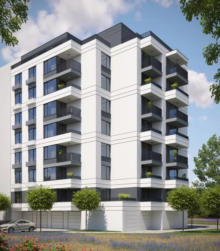 - Сградата разполага двустайни и тристайни жилища, надземни и подземни паркоместа и гаражи.