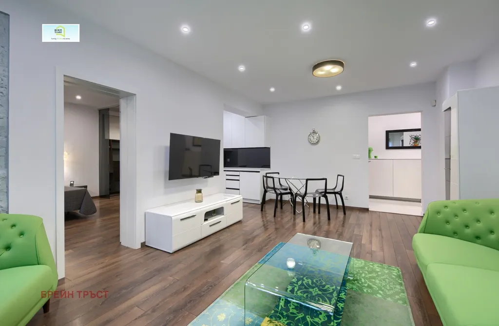 Брейн Тръст предлага под наем изключително стилен апартамент, разположен на тиха улица, но само на крачка от динамиката на пешеходната зона на Витошка и НДК.