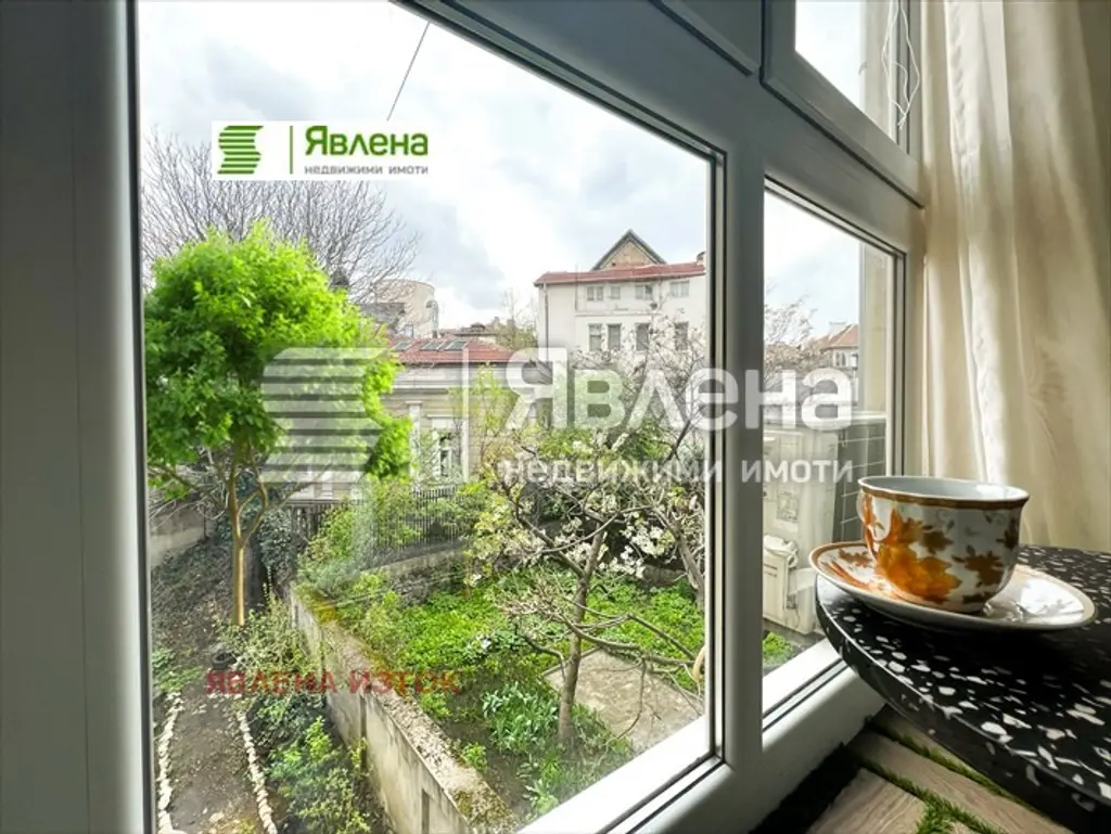Разполага с две големи спални, отделна кухня, баня, тоалетна, и приказна малка тераса с гледка към вътрешен двор и къщи с архитектурата на стара София.