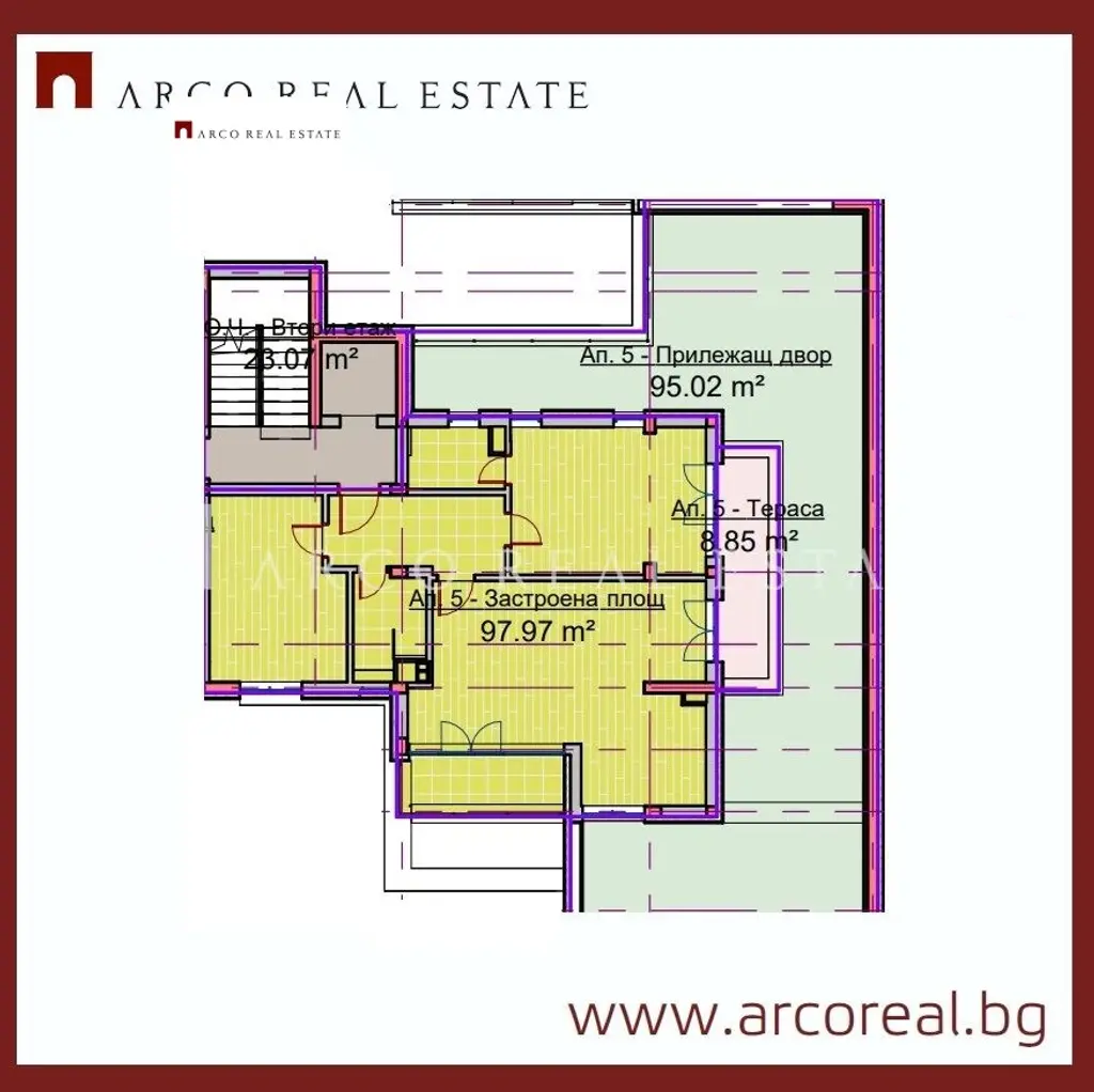 Площ: 89 кв.м. чиста жилищна площ + 104 кв.м. собствен двор и тераса перфектно място за сутрешното кафе, барбекю или отдих на открито.