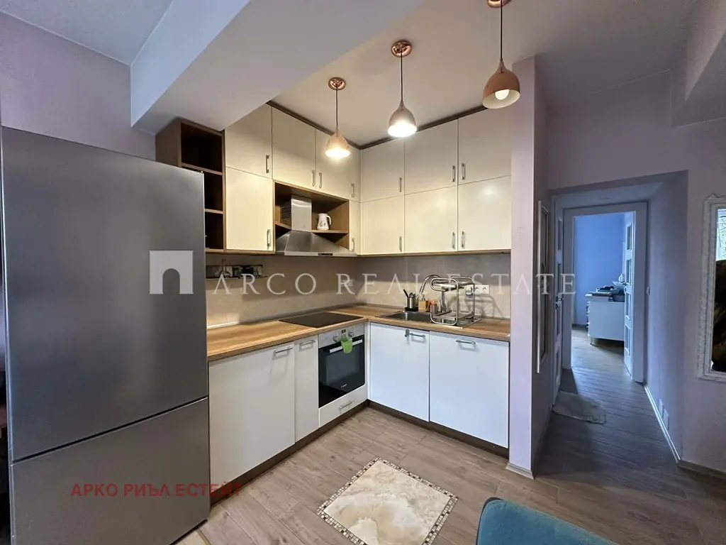 Разпредление: входно антре с голям гардероб, дневна с кухненски бокс, 2 слънчеви спални, баня с тоалетна.