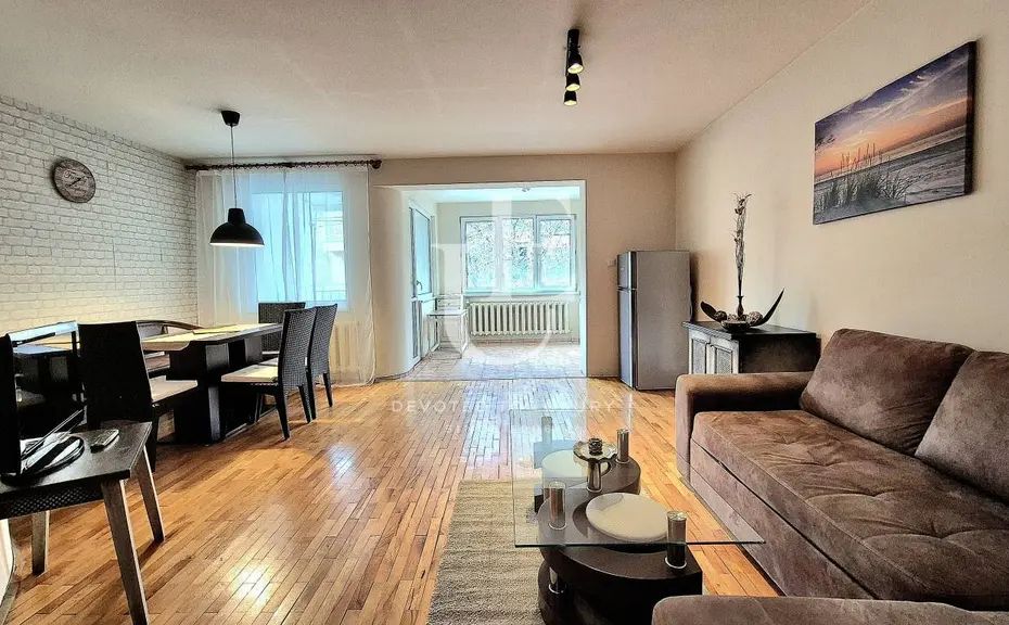 Апартаментът впечатлява с характер и внимание към детайла. Интериорът е стилизиран с ръчно изработени мебели и индивидуални дизайнерски решения, които придават усещане за топлина и автентичност. Дървени елементи, естествени материали и внимателно подбрани акценти създават атмосфера, различна от стандартните наемни имоти.