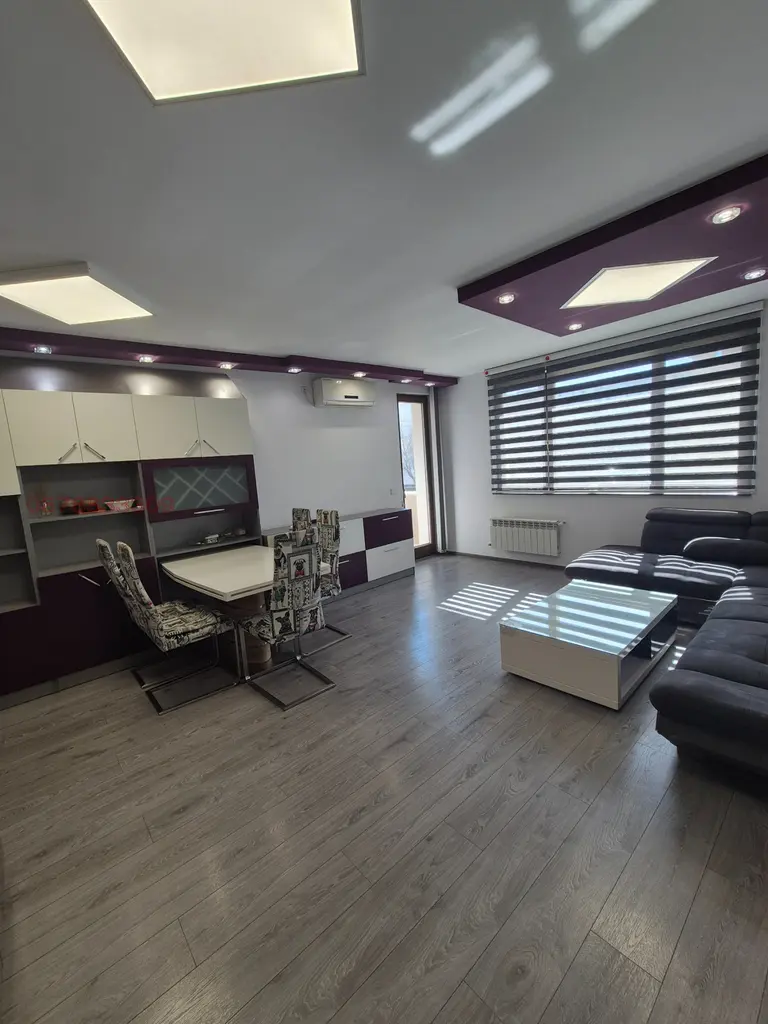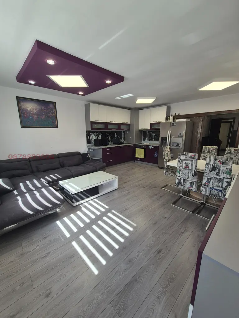 С площ от 80 кв.м., разположен на първи етаж в нова седеметажна сграда, имотът се отличава с източно изложение, гарантиращо приятна светлина.