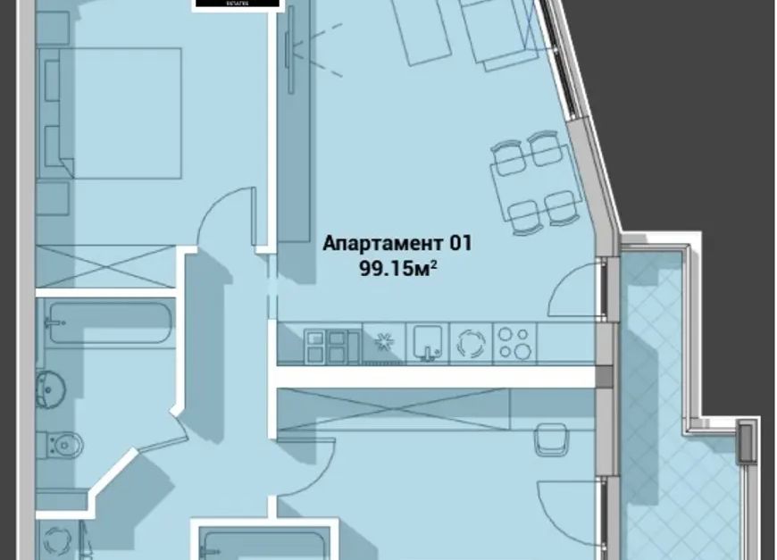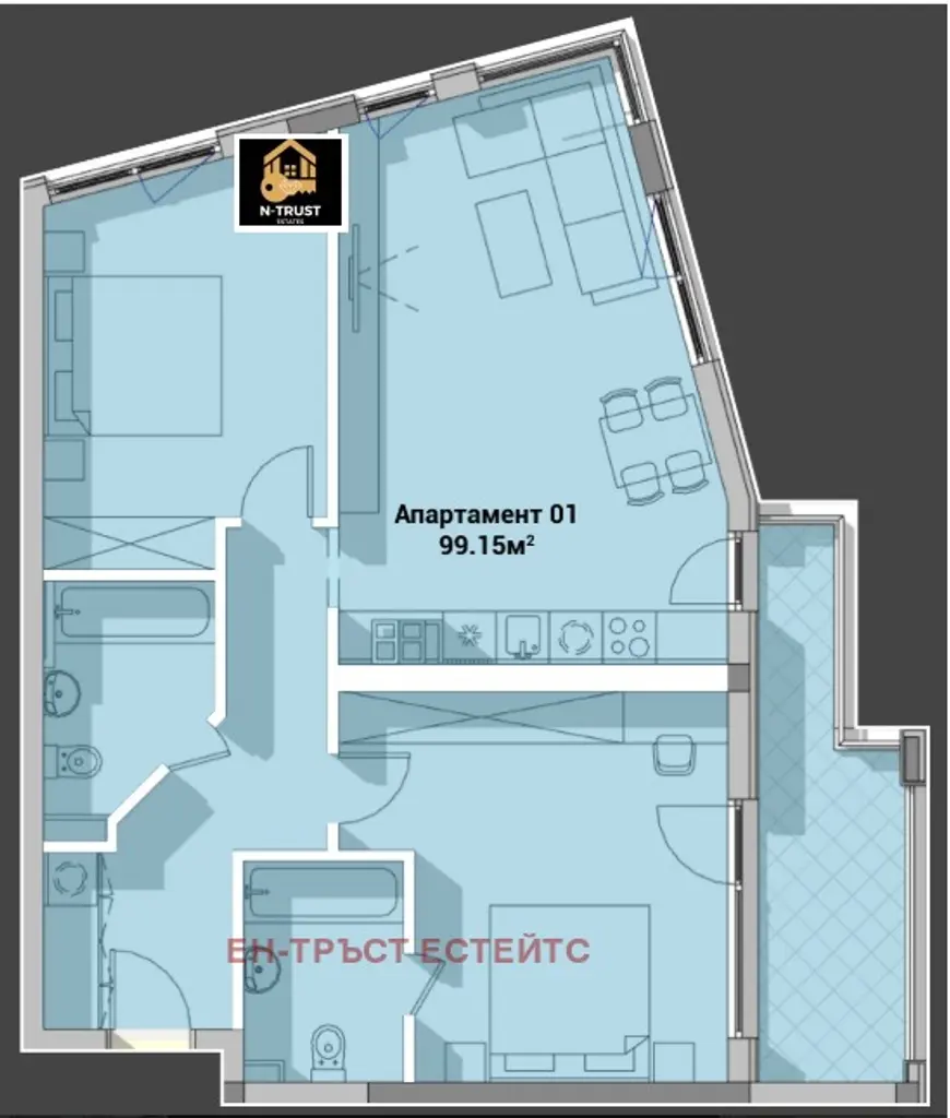 Апартамента с разположен на седми и е със застроена площ от 99,15 кв.м.