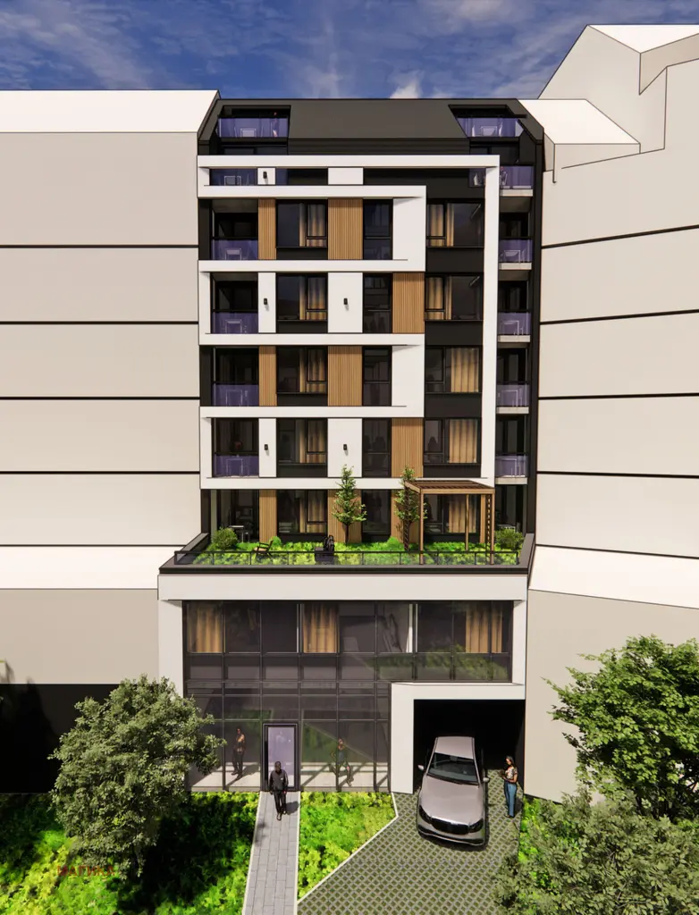 Брой апартаменти - 14. Забележка - на втори, трети и четвърти етаж има двустайни и тристайни апартаменти,състоящи се от боксониери,със самостоятелн вход,баня и тоалетна. Подходящи за инвестиция и за краткосрочно или дългосрочно отдаване под наем; На ниво 8-9 има два мезонета.