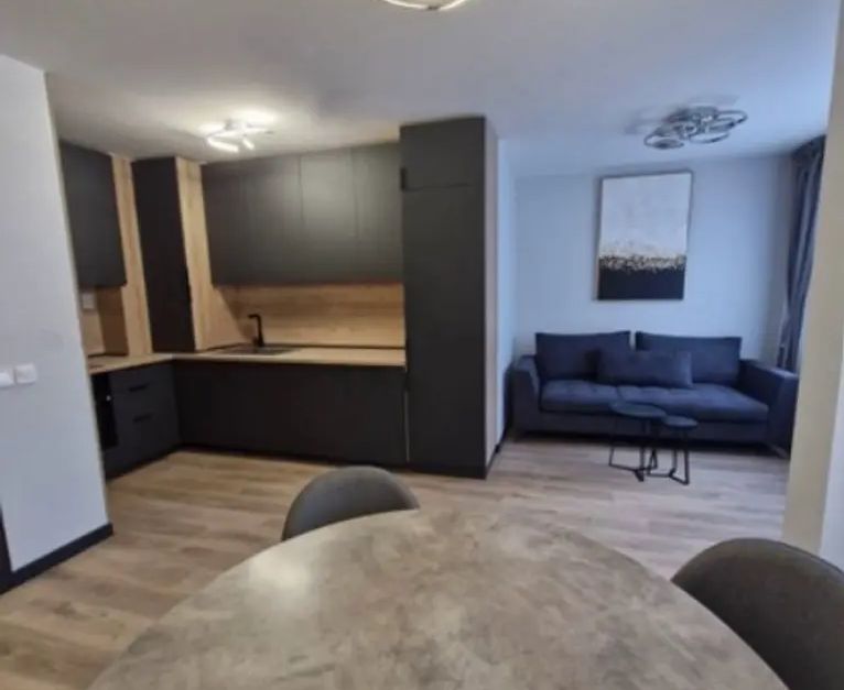 Имотът е обзаведен, с площ 115 кв.м, на 5-ти от 7 етажа в сграда с асансьор. Разпределението включва входно антре, дневна с кухня и трапезария, две спални, две бани с тоалетна и тераса.