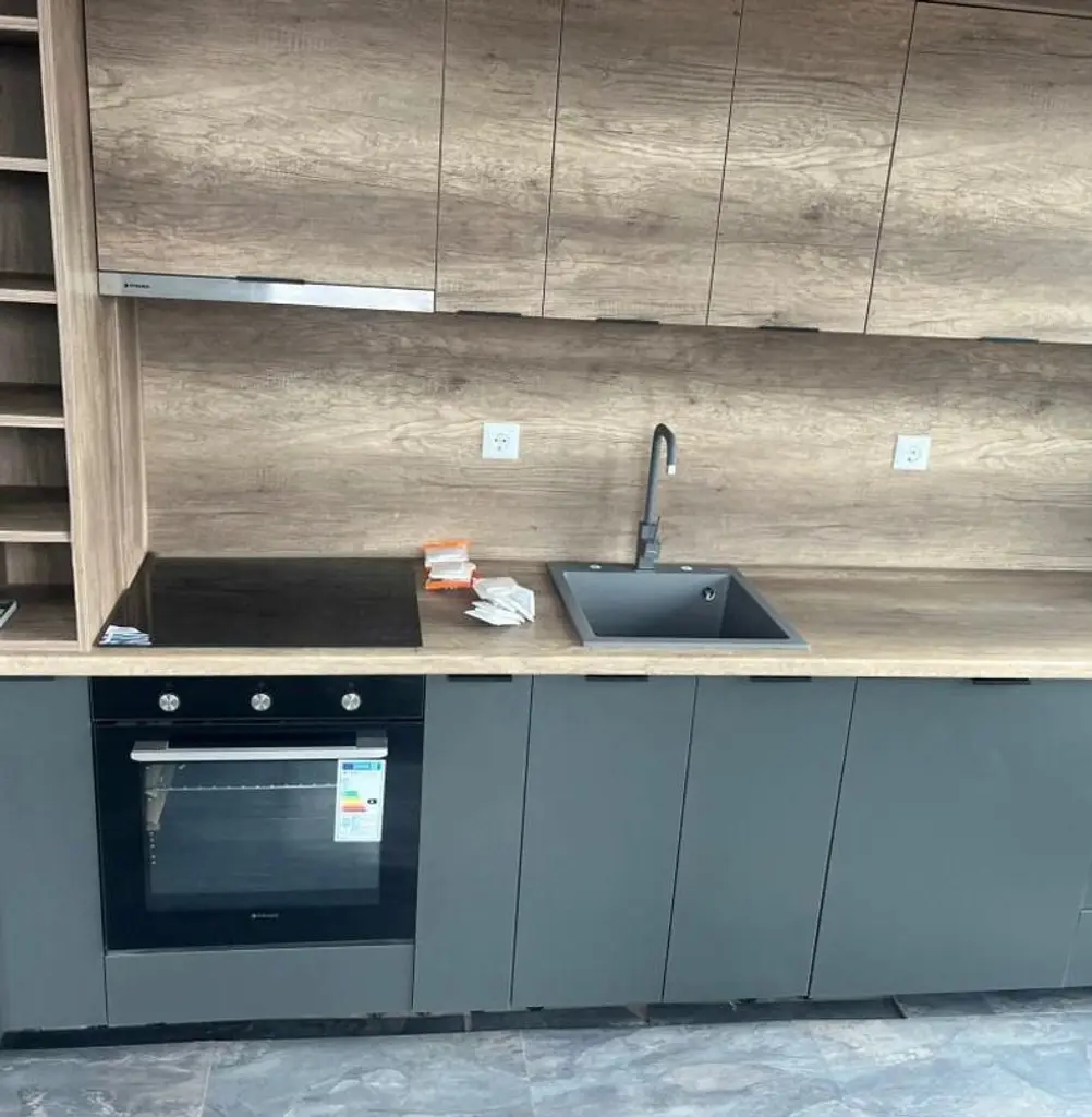 Разпределението включва хол с кухненски бокс, две спални, баня с тоалетна и тераса. Апартаментът е напълно обзаведен, втората спалня ще бъде обзаведена по желание на наемателя и отоплява се на ток. Месечният наем е 800 EUR. Имотът е оборудван с климатик и се намира в близост до спирки на градския транспорт, осигуряващи бърза връзка с центъра.