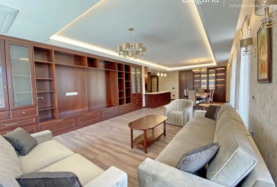 Bulgaria Sotheby’s International Realty има удоволствието да представи на Вашето внимание напълно обзаведено жилище, завършено по дизайнерски проект, носещо усещане за лукс, съчетан с класически елементи.