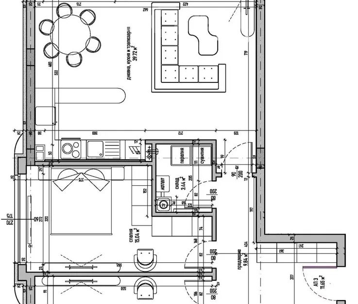 - дневна с кухненска част