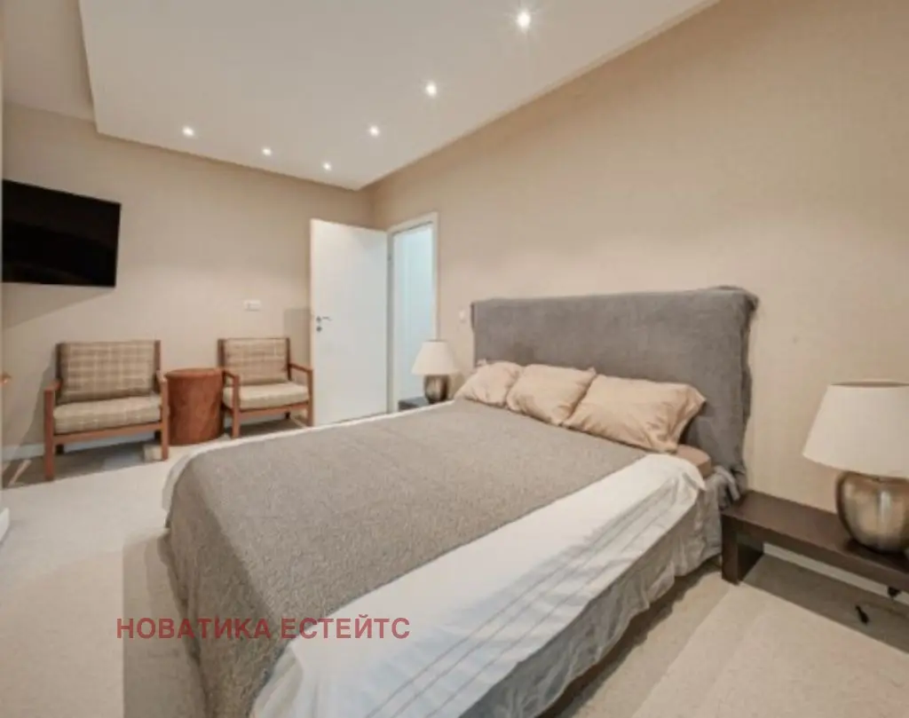 Площ 148 кв.м. на 2 етаж е апартамента.Изложение: Юг и запад гарантирана светлина и топлина през целия ден. Има тераса. Асансьор, климатици . Лукс.