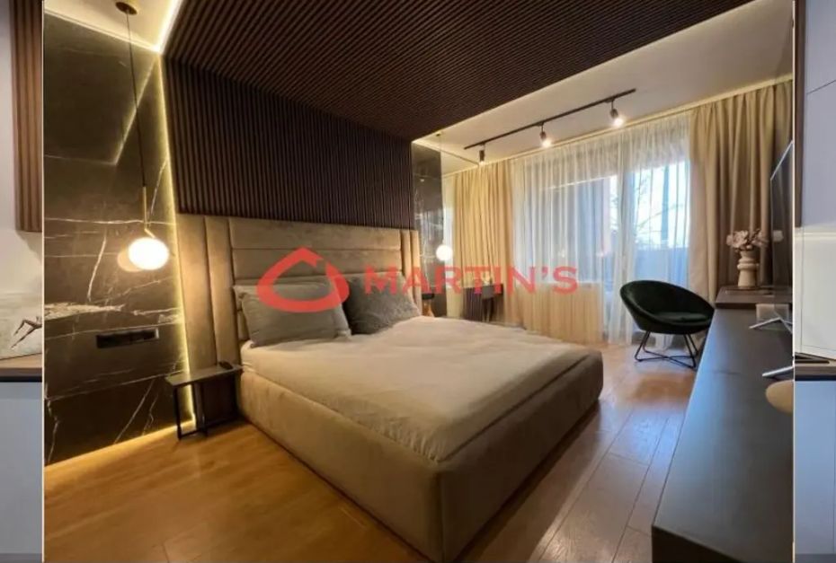 Предлагаме за продажба изпълнен по дизайнерски проект, луксозно обзаведен и оборудван тристаен апартамент в затворен комплекс с красив двор и общи части. Сградата е разпознаваема в района, защото е отличена с награда 'Сграда на годината' за 2019 г. Жилището е със застроена площ от 123 кв.м. и се състои от входно антре с вграден и свободностоящ гардероб, мокро помещение, баня, просторен хол с кухненски бокс, родителска спалня с баня от 25 кв.м., детска стая от 20 кв.м., две тераси, едната, от които е с гледка към Витоша планина.