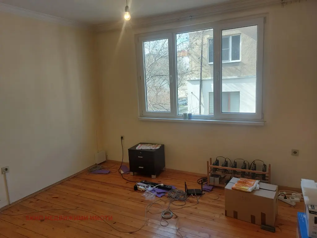 Тристаен апартамент, тухла от 70те години, просторен, в добро състояние, разполага с голям хол с тераса, две спални, отделна кухня с тераса, баня и тоалетна, антре. Стаите са ремонтирани, настилки естествен дървен паркет, сменени дограми, санитарните възли не са обновявани. Прилежащо към апартамента е и таванско помещение от 15 кв.метра, с капандури, състои се от две свързани стаи, има вода и канал и може да се обособи за живеене.