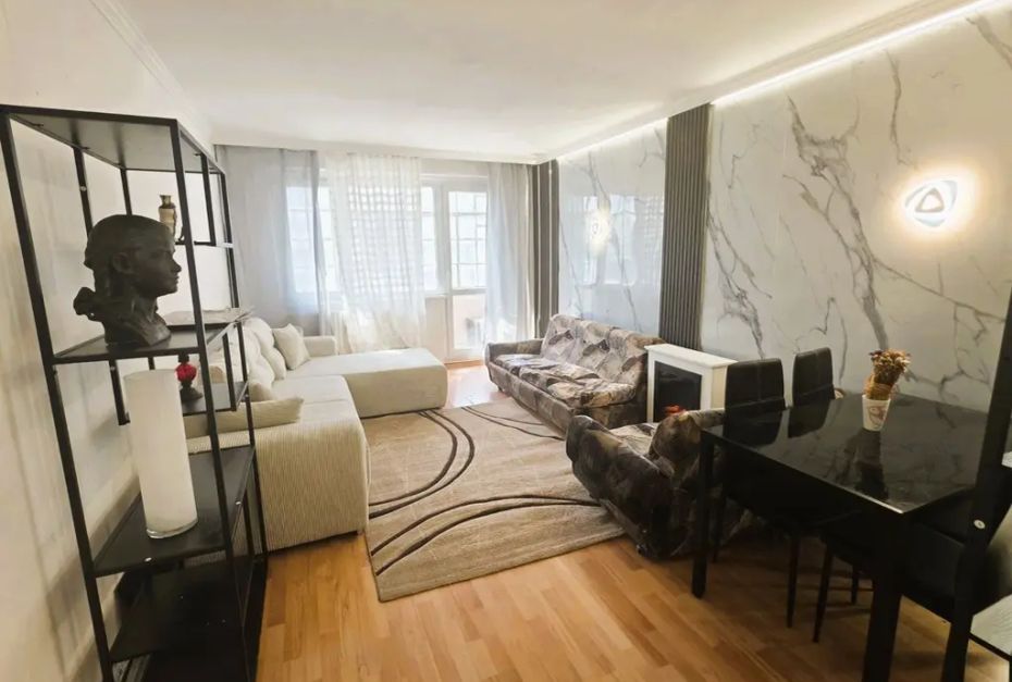 Апартаментът е след ремонт и се предлага с чисто нови електроуреди в гаранция - пералня със сушилня, съдомиялна машина и фурна. Обзаведен е с нова мека мебел и опция сън. Отоплението е на ТЕЦ.