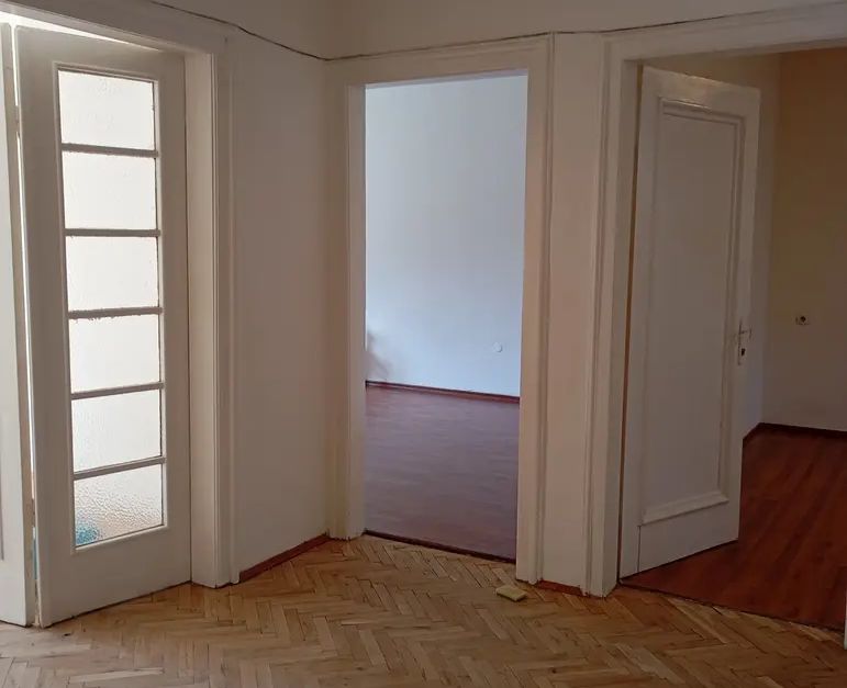 Сградата е санирана, апартаментът е след освежителен ремонт с високи тавани около 3 м, ТЕЦ и климатици във всяка стая. Настилките са комбинация от паркет, ламинат, теракот и фаянс.
