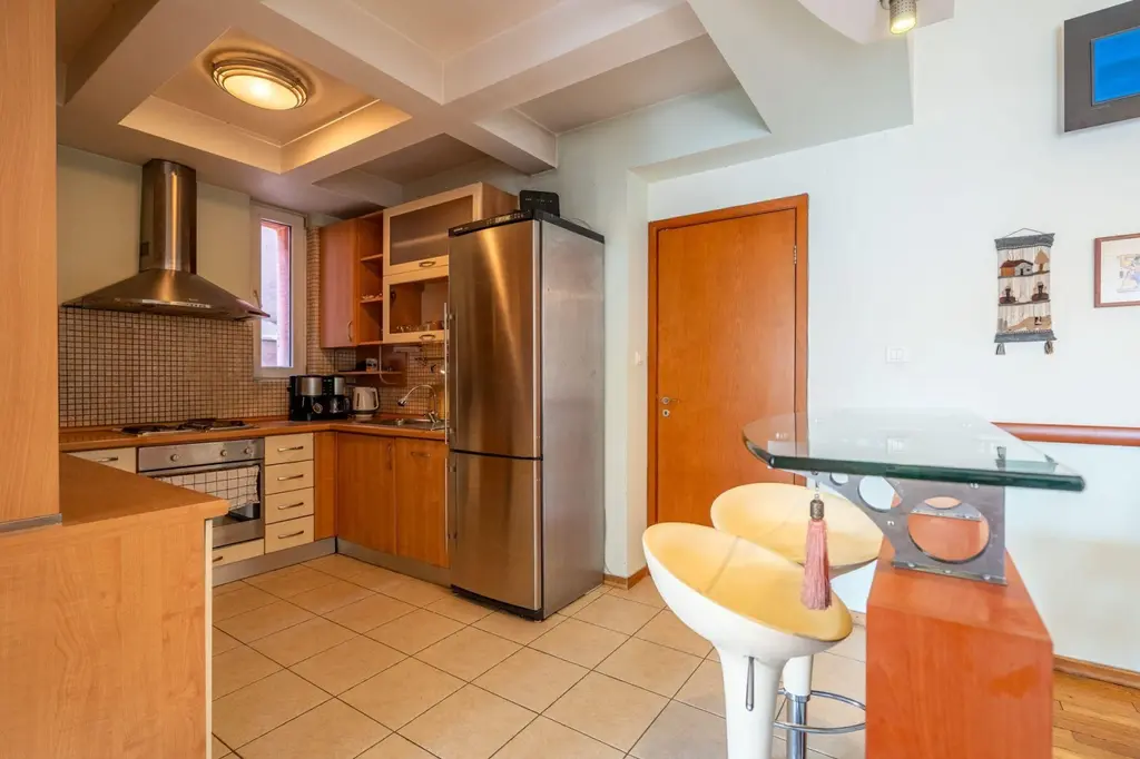 Предлаганият имот е 4-стаен апартамент, разположен в Центъра на София, на ул. Солунска. Разпределението включва Г-образен хол с трапезария и кухненски бокс, както и три самостоятелни спални. Апартаментът разполага с тераса, баня с тоалетна и отделна тоалетна. Сградата е тухлена, построена през 1960 г., с общо 5 етажа, а апартаментът се намира на 3-ти етаж с наличен асансьор. Локацията е близо до бул. Витоша, което осигурява лесен достъп до градската инфраструктура и удобства. Имотът е подходящ за семейно ползване, като предлага балансирано съчетание на пространство и функционалност в централна градска среда.