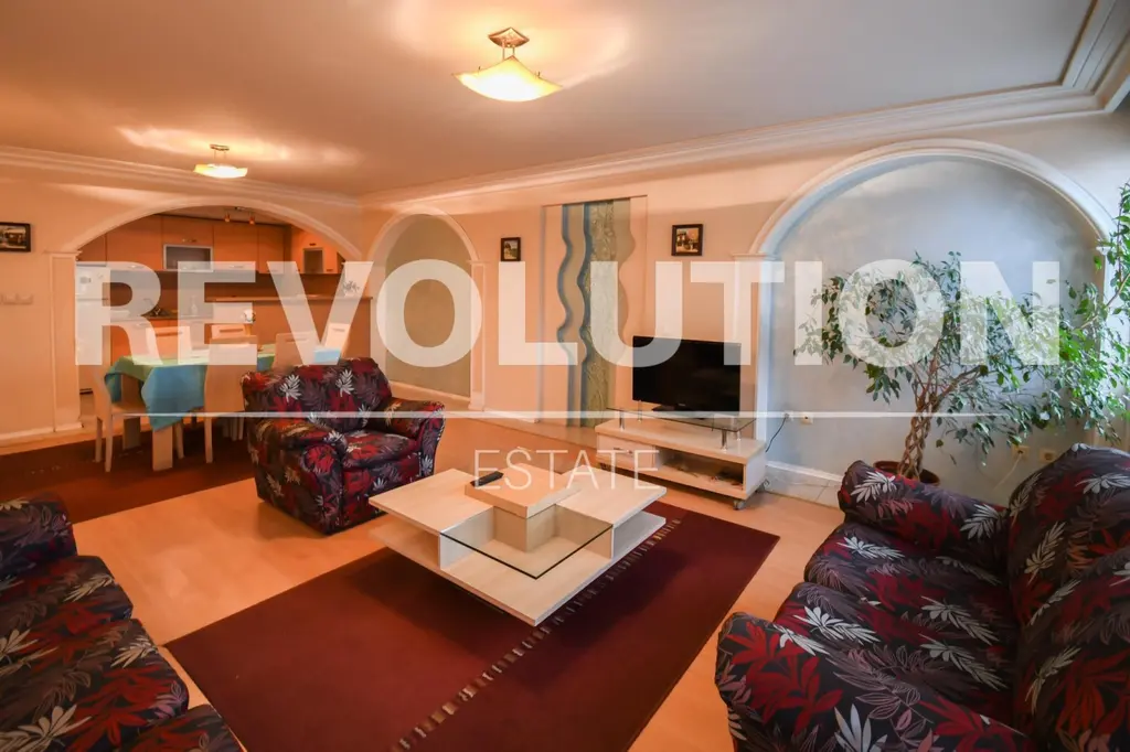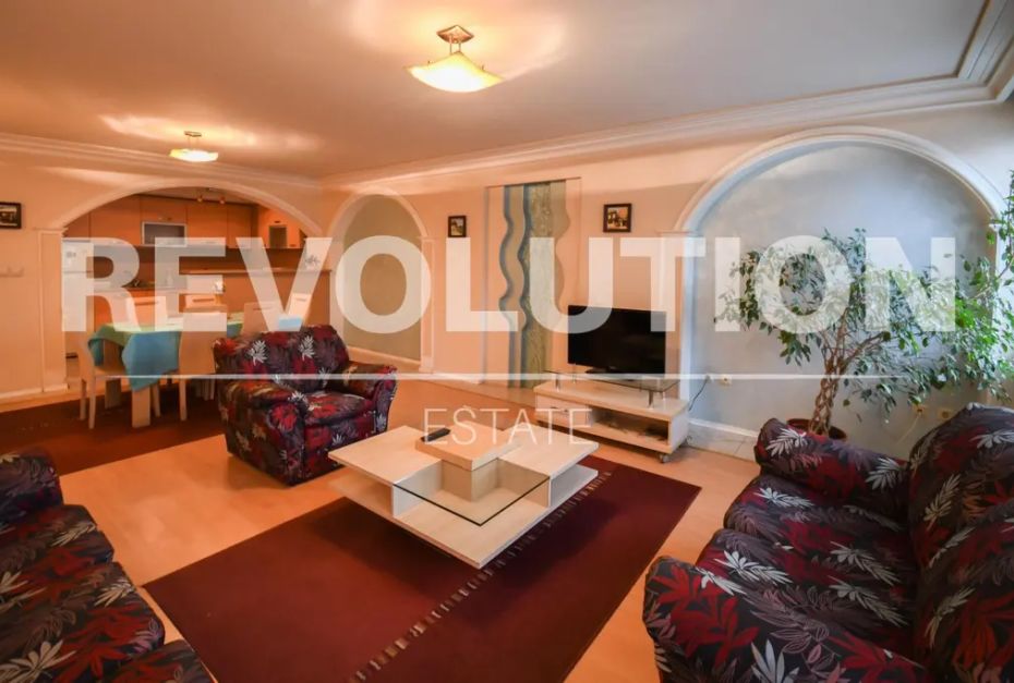Просторен четиристаен апартамент с 180 кв.м светли стаи, включващ три спални, хол с кухня, две бани и две тераси. Обзаведен с модерно оборудване, отопление на ТЕЦ и удобно свързан с градски транспорт. Просторните тераси са идеални за почивка и кафе на открито.