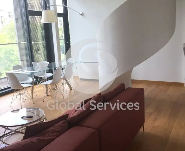 We present a modern designer apartment located in a new, high-class building with controlled access, security, and video surveillance.
