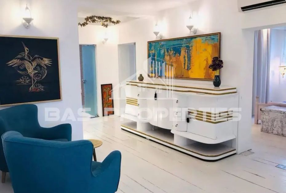 Предлаганият многостаен апартамент с площ от 175 кв.м се намира в сграда от 1949 г. в сърцето на София. Жилището впечатлява с високи тавани и масивни тухлени стени, което осигурява стабилност и шумоизолация. Разпределението включва просторен вестибюл, хол, отделна трапезария, самостоятелна кухня с отворена концепция и стъклен покрив, три спални, голяма баня с джакузи, балкон и излаз към обща тераса за етажа. Изложението е изток/запад, което допринася за естествената светлина през деня. Отоплението е на електричество. Локацията е изключително удобна, с близост до метростанция Сердика, Софийската синагога и административни сгради. В момента имотът се използва успешно като инвестиционен продукт за краткосрочен наем с доказан доход. Сградата има одобрен проект за саниране, което е допълнителен плюс за бъдещи собственици.
