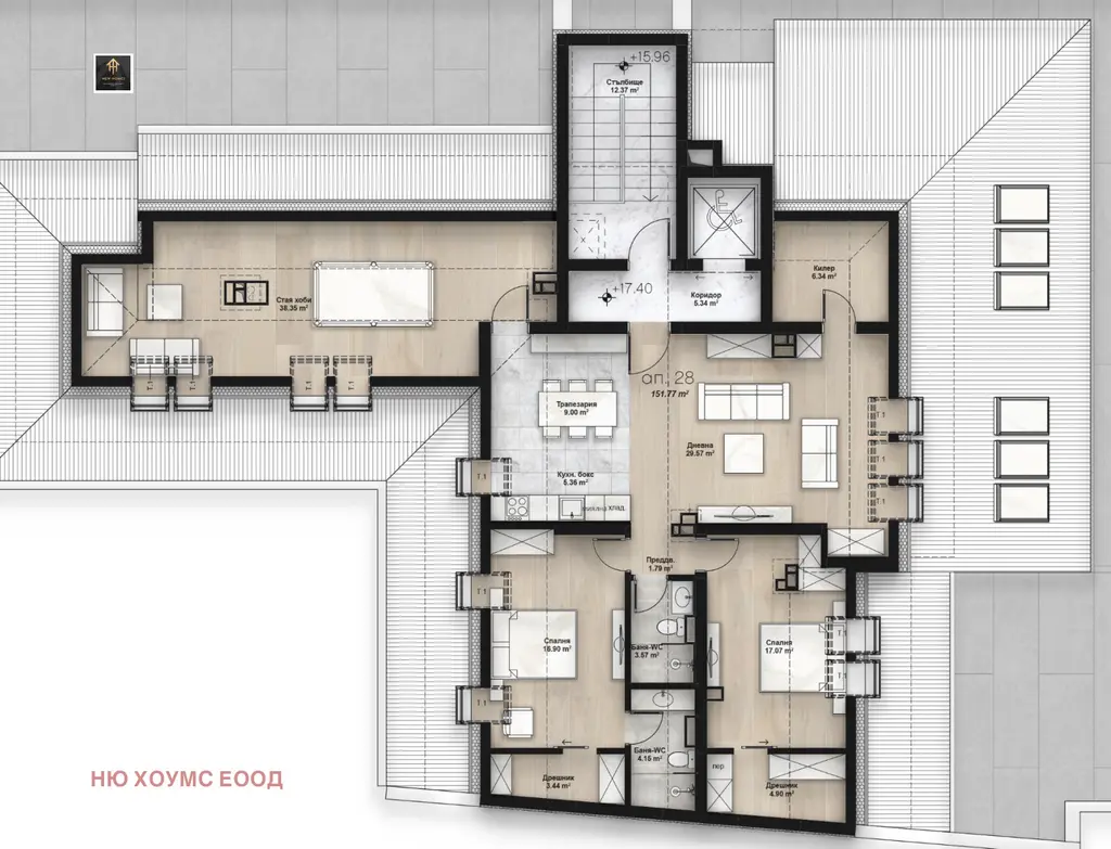 Ню Хоумс предлага четиристаен апартамент в бутикова сграда HD&M Residence в жк. Люлин 2- проект с ексклузивна архитектура, елегантни фасади и уютни вътрешни пространства.