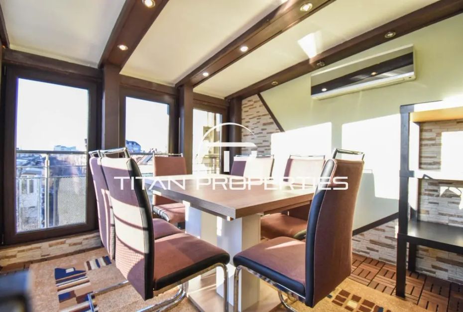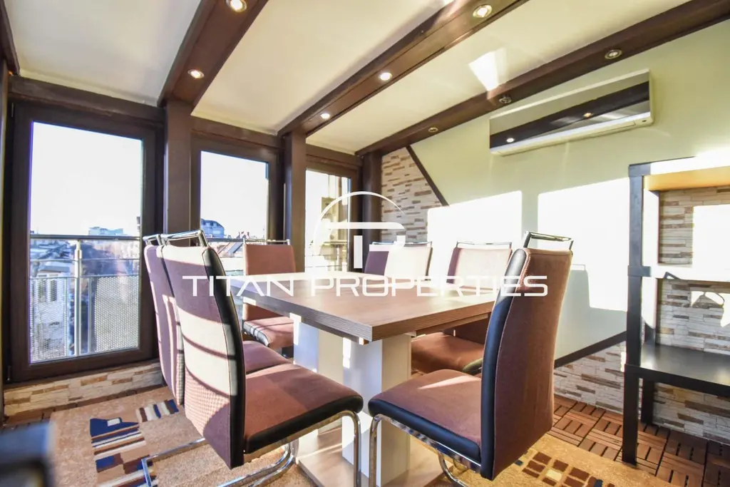 Жилището е с площ 105 кв.м, разположено на 8-ми етаж от 8 в нова сграда, с впечатляващи гледки и усещане за простор.
