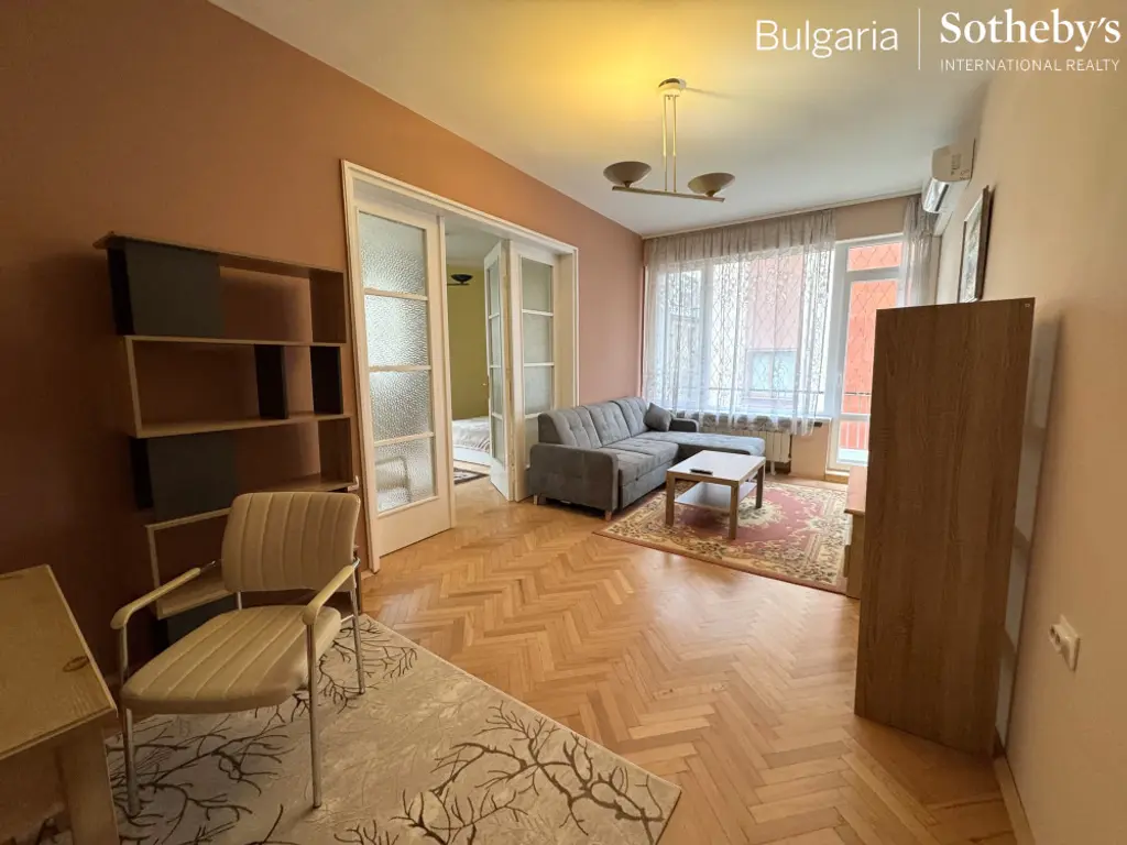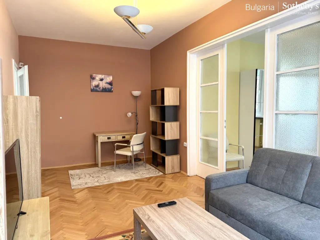 BULGARIA SOTHEBY’S INTERNATIONAL REALTY има удоволствието да представи на Вашето внимание просторендвустаен апартамент с паркомясто,разположен на трети етаж в тухлена сграда от 60-те години, на ул. "Христо Белчев", в сърцето на София.