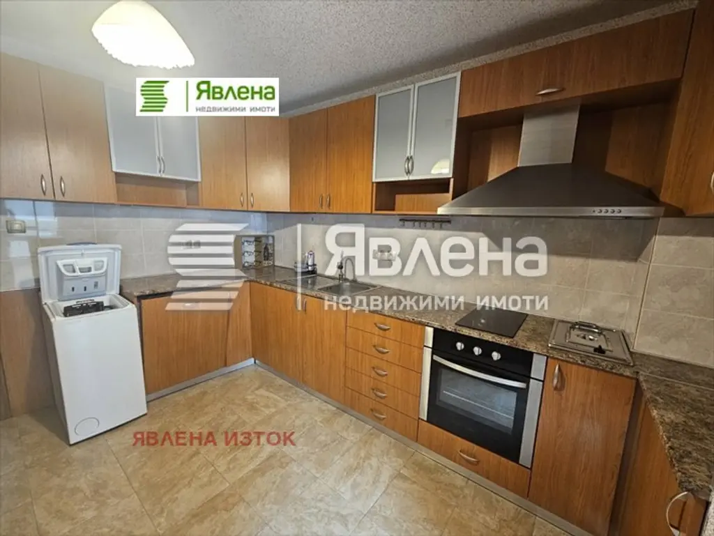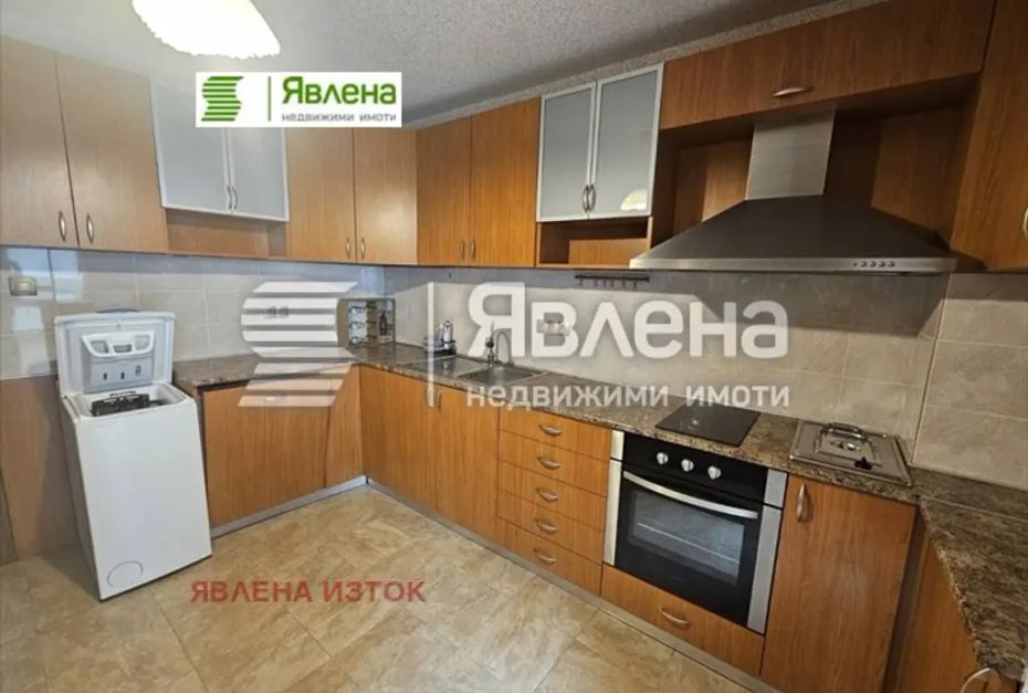 Агенция Явлена предлага основно ремонтиран тристаен апартамент до входа на Южния парк. Разпределението е както следва: две непреходни спални, хол, отделна кухня, две бани с тоалетни .Кухнята е напълно обзаведена с миялна машина , вградена фурна , вградени котлони , вграден фритюрник , пералня. В коридора има вградени гардероби и шкафове за обувки. Апартаментът се предлага необзаведен. Има опция за наемане на гараж на отделна цена. Отоплението е на ток с конвектори и климатици във всяка стая. (yavlenaCOM/168002/rent).
