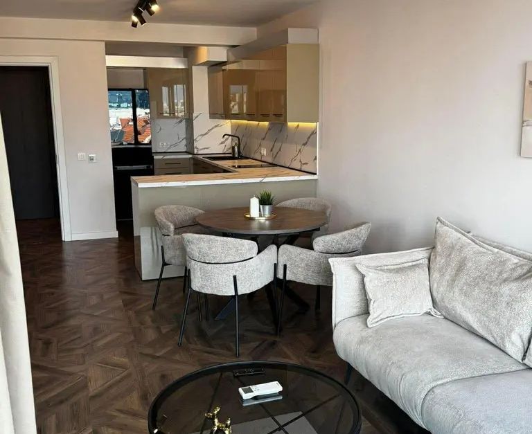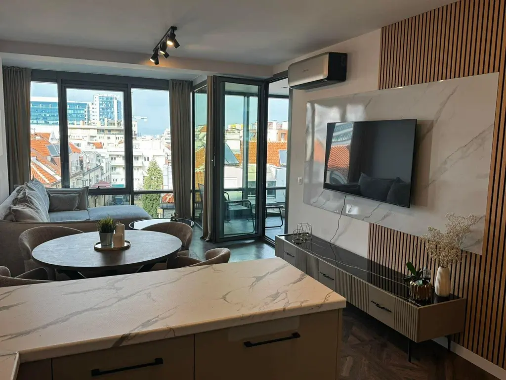 Свеж двустаен апартамент в нова сграда от 2024 г. с панорамно изложение към Запад и Север. Интериорът впечатлява с функционално разпределение просторен хол с кухня, отделна спалня, зимна тераса и външна тераса, баня с тоалетна. Отопление на газ за комфорт през цялата година. 🌟